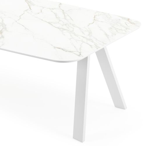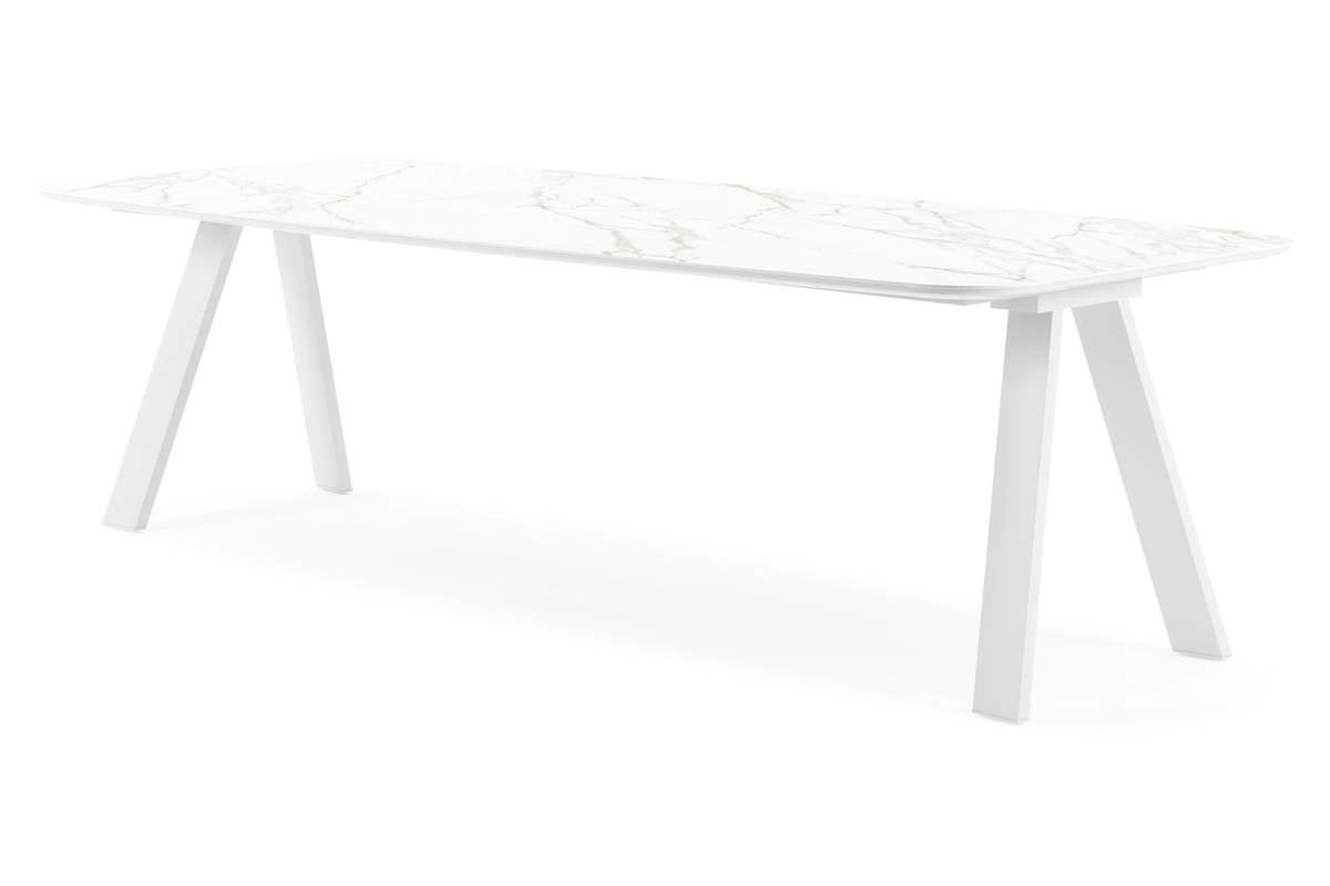 De Cesano tafel onderscheidt zich door zijn stijlvolle onderstel met omgekeerde V-poten, wat een eigentijdse en elegante uitstraling geeft. Met zijn tijdloze charme voegt de Cesano tafel een vleugje moderne klasse toe aan elk interieur.