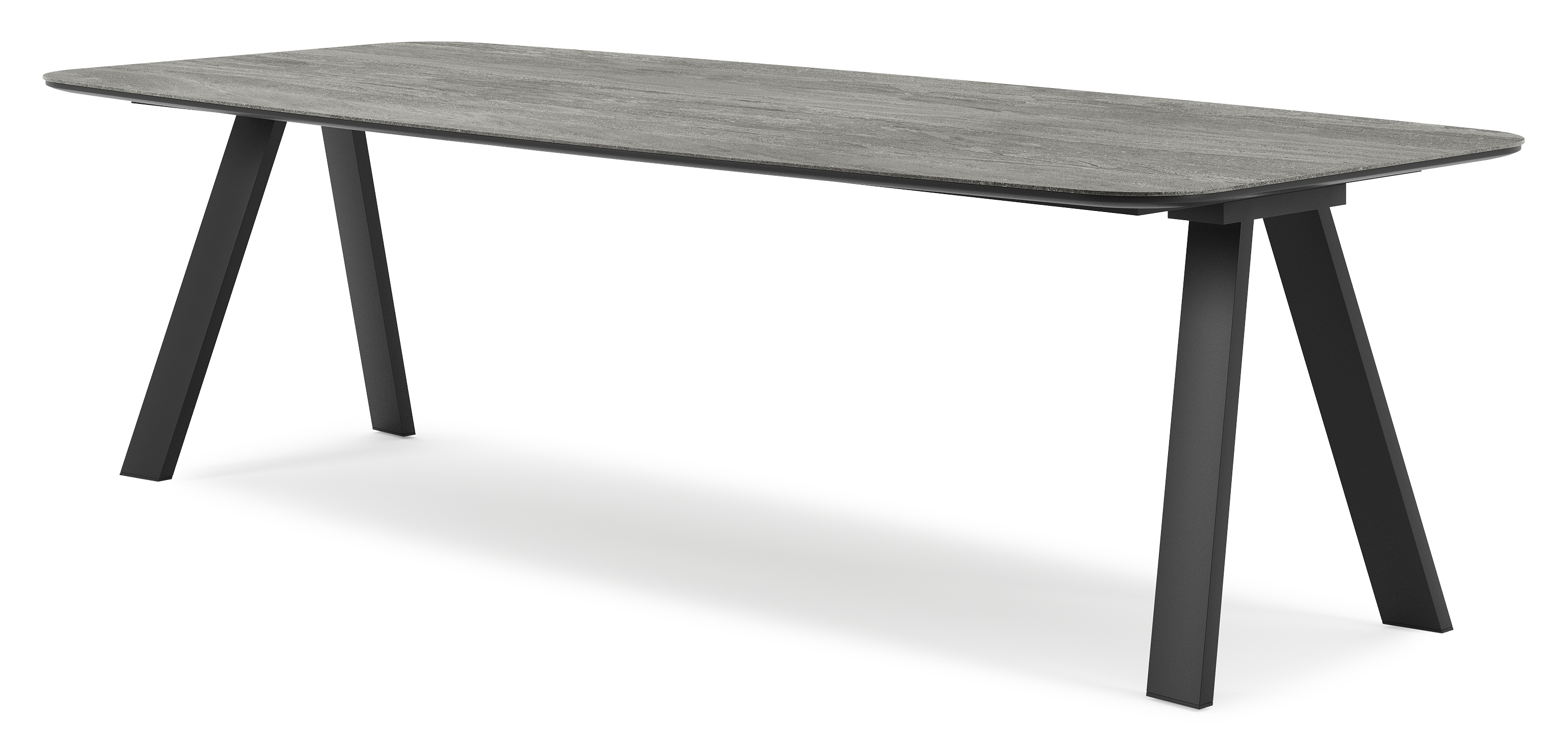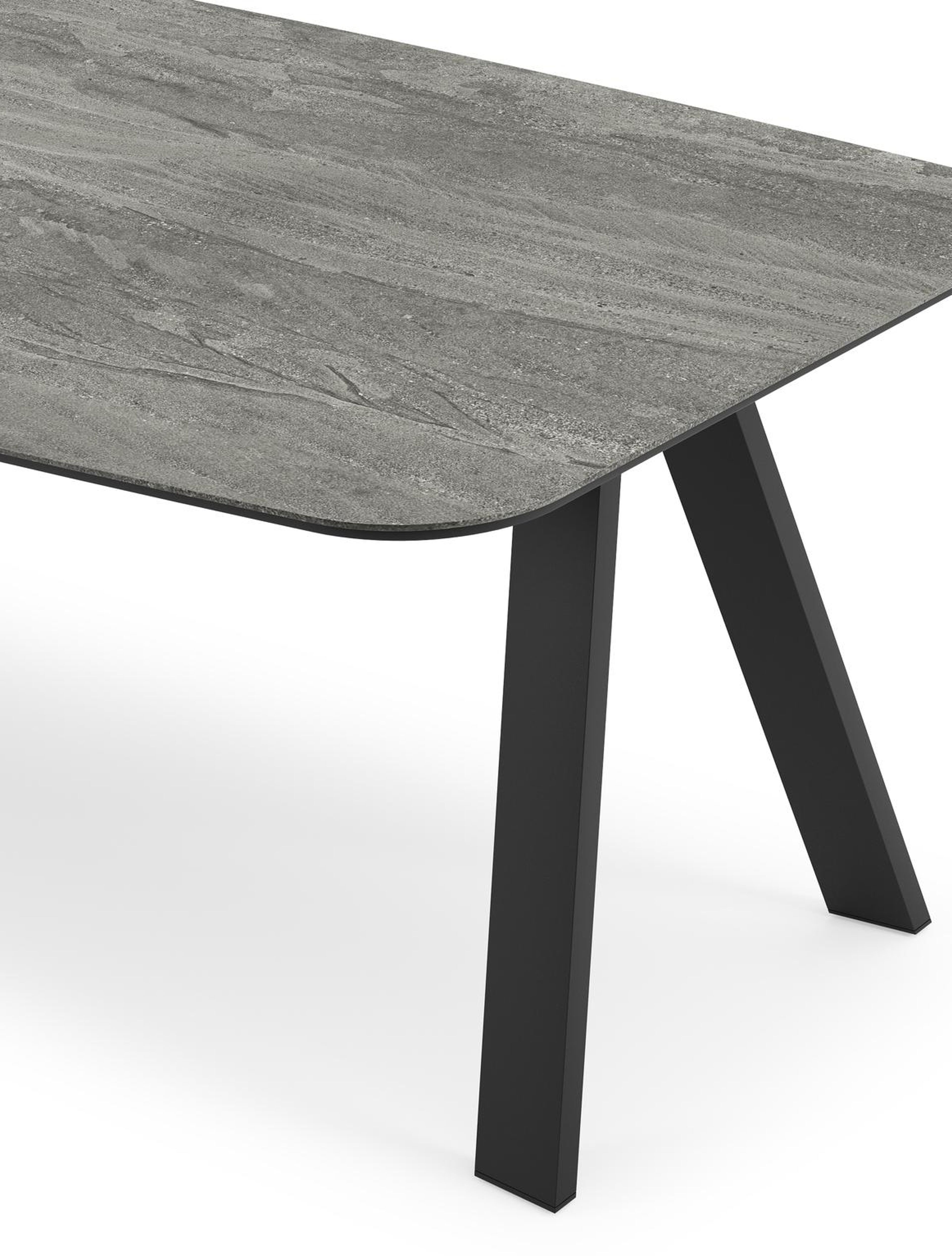 De Cesano tafel onderscheidt zich door zijn stijlvolle onderstel met omgekeerde V-poten, wat een eigentijdse en elegante uitstraling geeft. Met zijn tijdloze charme voegt de Cesano tafel een vleugje moderne klasse toe aan elk interieur.