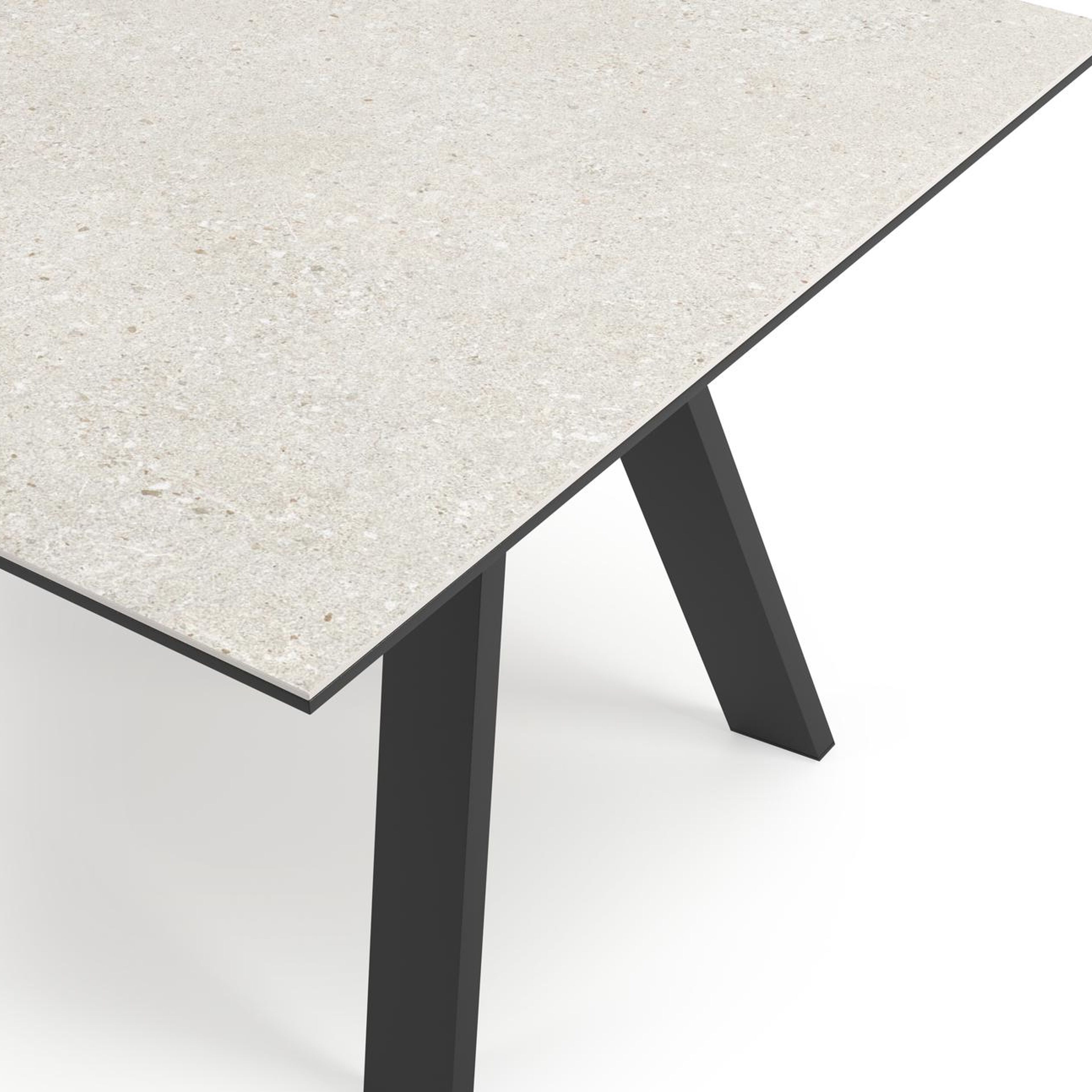 De Cesano tafel onderscheidt zich door zijn stijlvolle onderstel met omgekeerde V-poten, wat een eigentijdse en elegante uitstraling geeft. Met zijn tijdloze charme voegt de Cesano tafel een vleugje moderne klasse toe aan elk interieur.
