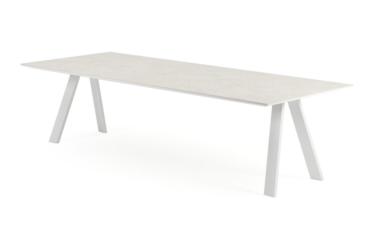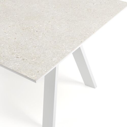 De Cesano tafel onderscheidt zich door zijn stijlvolle onderstel met omgekeerde V-poten, wat een eigentijdse en elegante uitstraling geeft. Met zijn tijdloze charme voegt de Cesano tafel een vleugje moderne klasse toe aan elk interieur.
