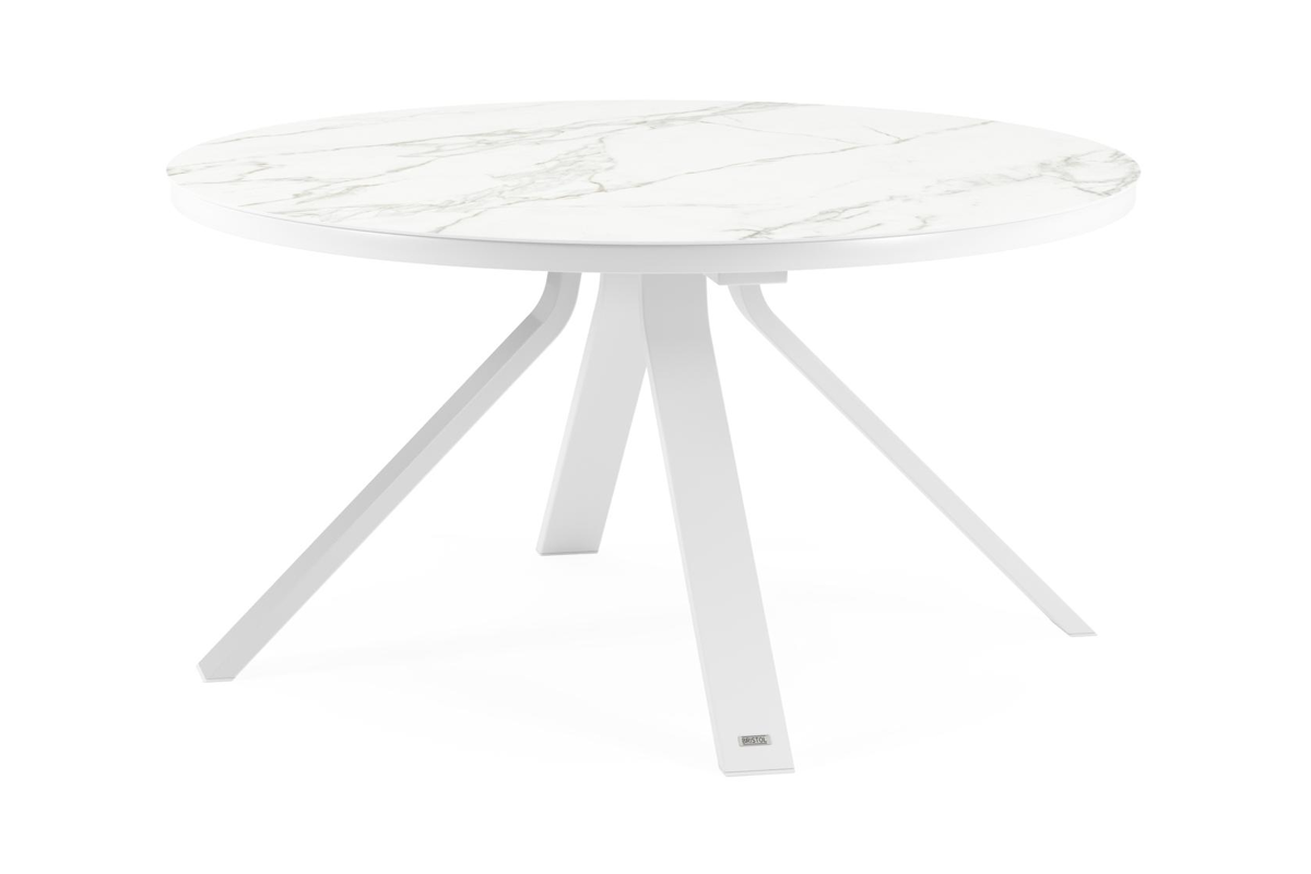 Cesano tuintafel in wit aluminium en volkeramiek calacatta - Dia. 148 x H 74,5 cm | Exterioo
