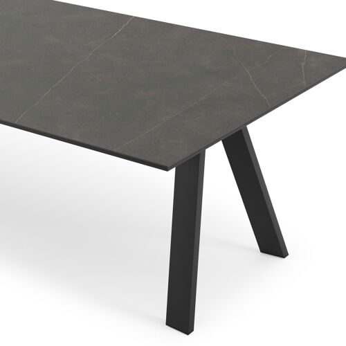 De Cesano tafel onderscheidt zich door zijn stijlvolle onderstel met omgekeerde V-poten, wat een eigentijdse en elegante uitstraling geeft. Met zijn tijdloze charme voegt de Cesano tafel een vleugje moderne klasse toe aan elk interieur.