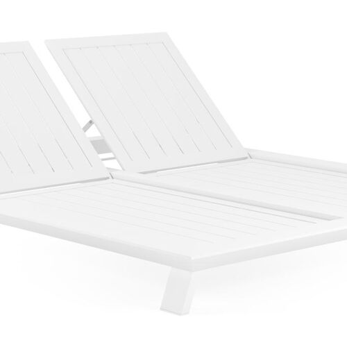 Cesano verstelbaar dubbel ligbed in wit aluminium met catania sand all weather cosytica kussen | Exterioo