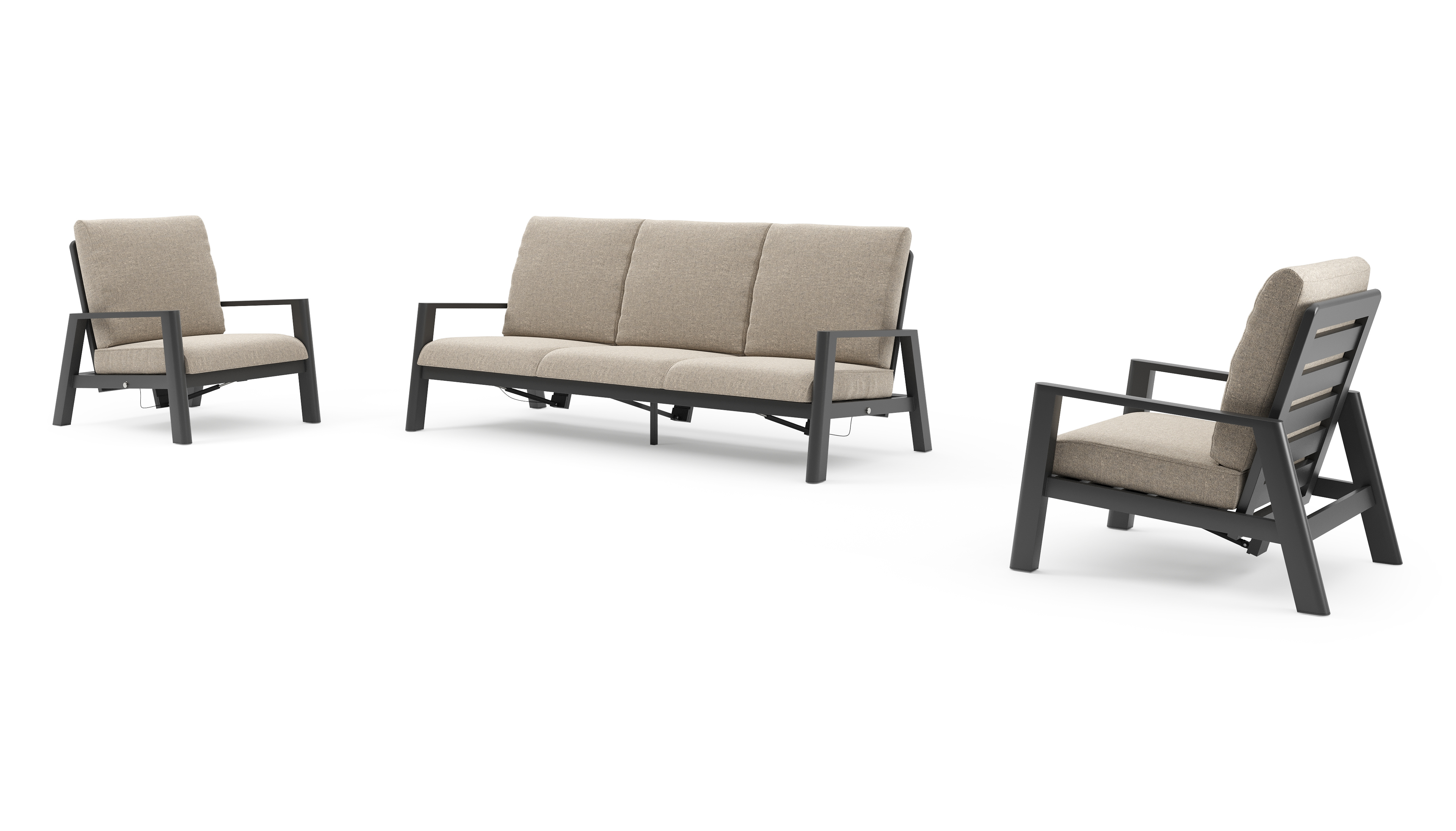 Cirello loungeset in zwart aluminium met chartres pewter all weather sunbrella® luxe kussen | Exterioo tuinmeubelen