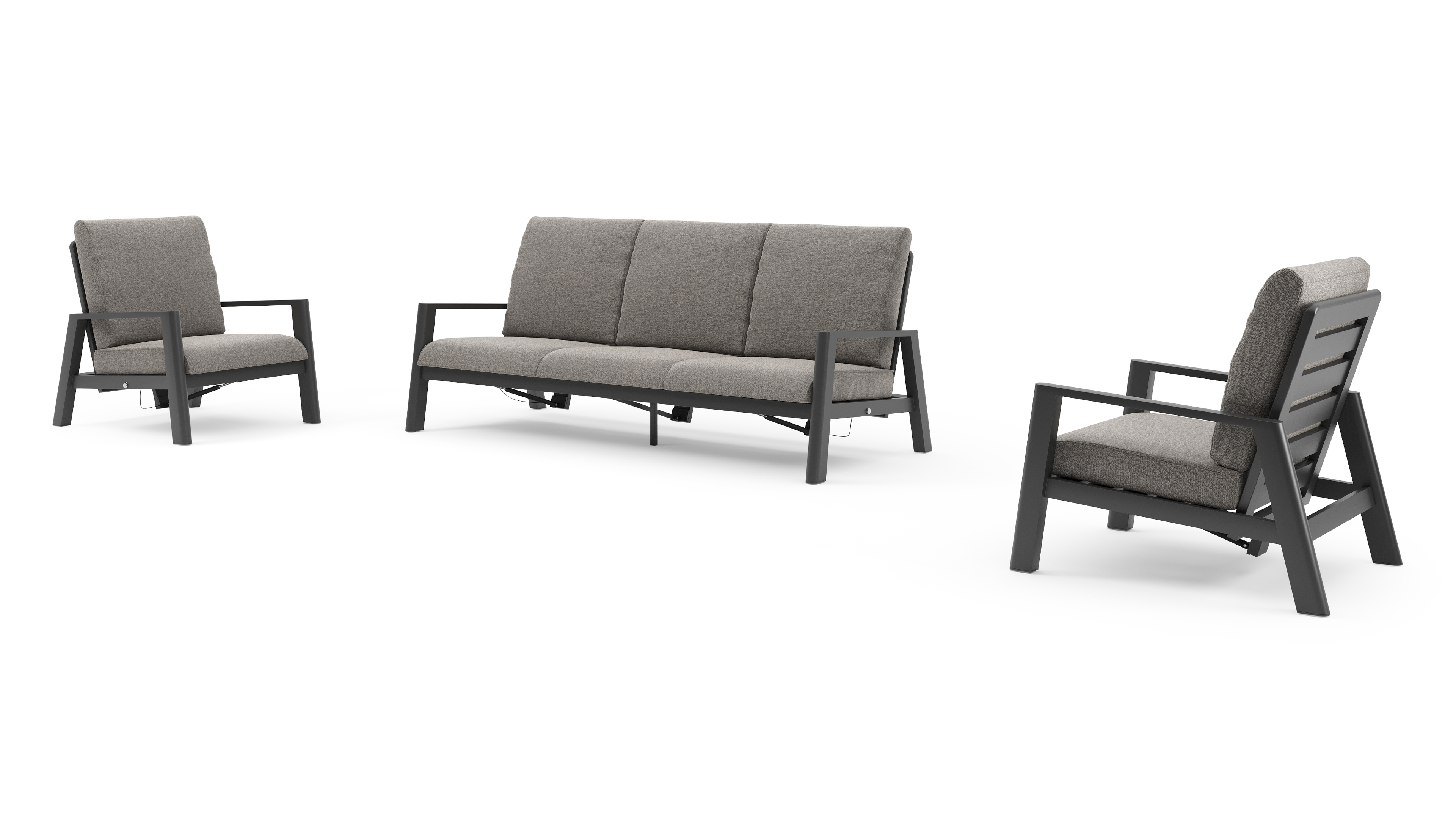 Cirello loungeset in zwart aluminium met chartres drizzle all weather sunbrella® luxe kussen | Exterioo tuinmeubelen