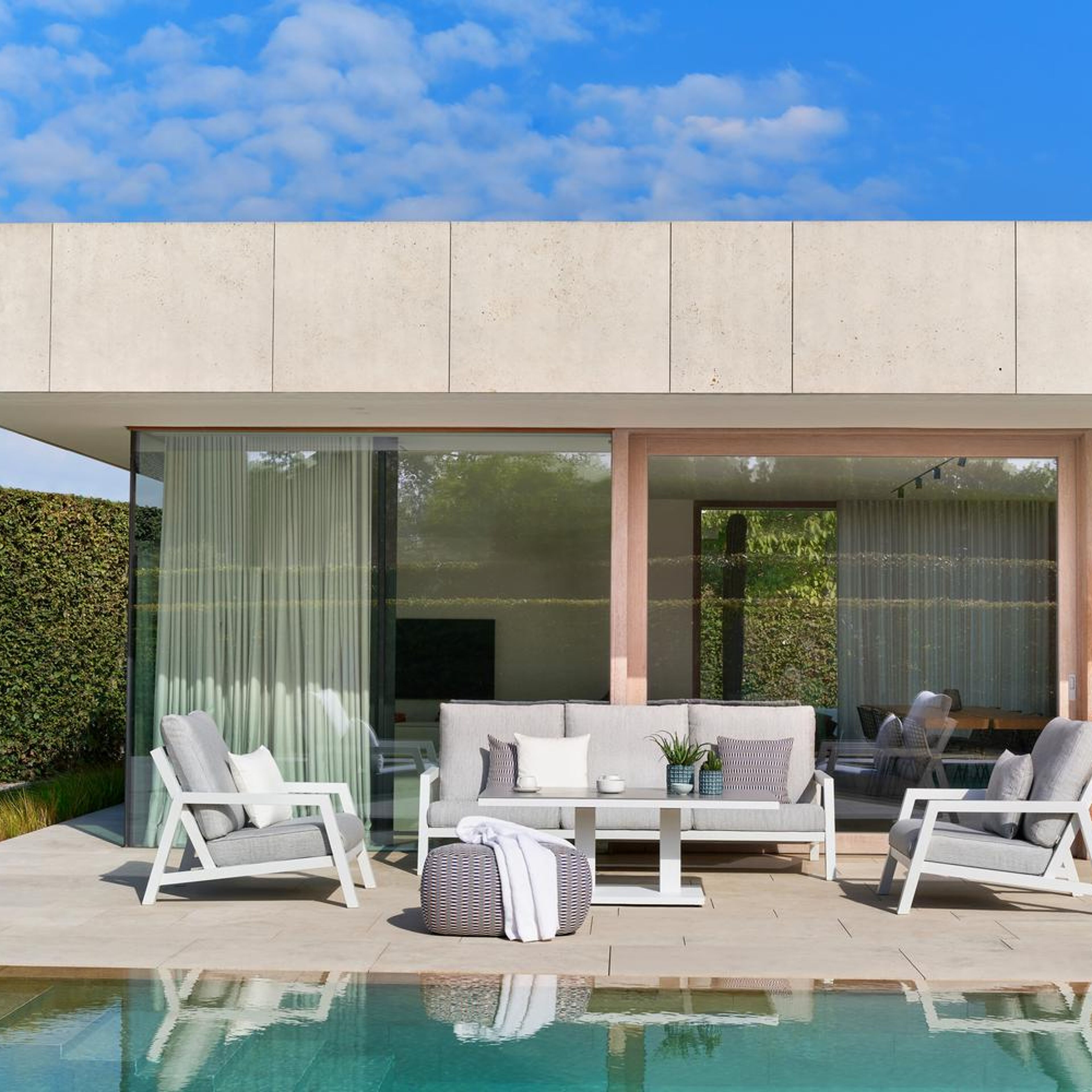 Cirello loungeset in wit aluminium met savane nimbus all weather sunbrella® luxe kussens | Exterioo tuinmeubelen