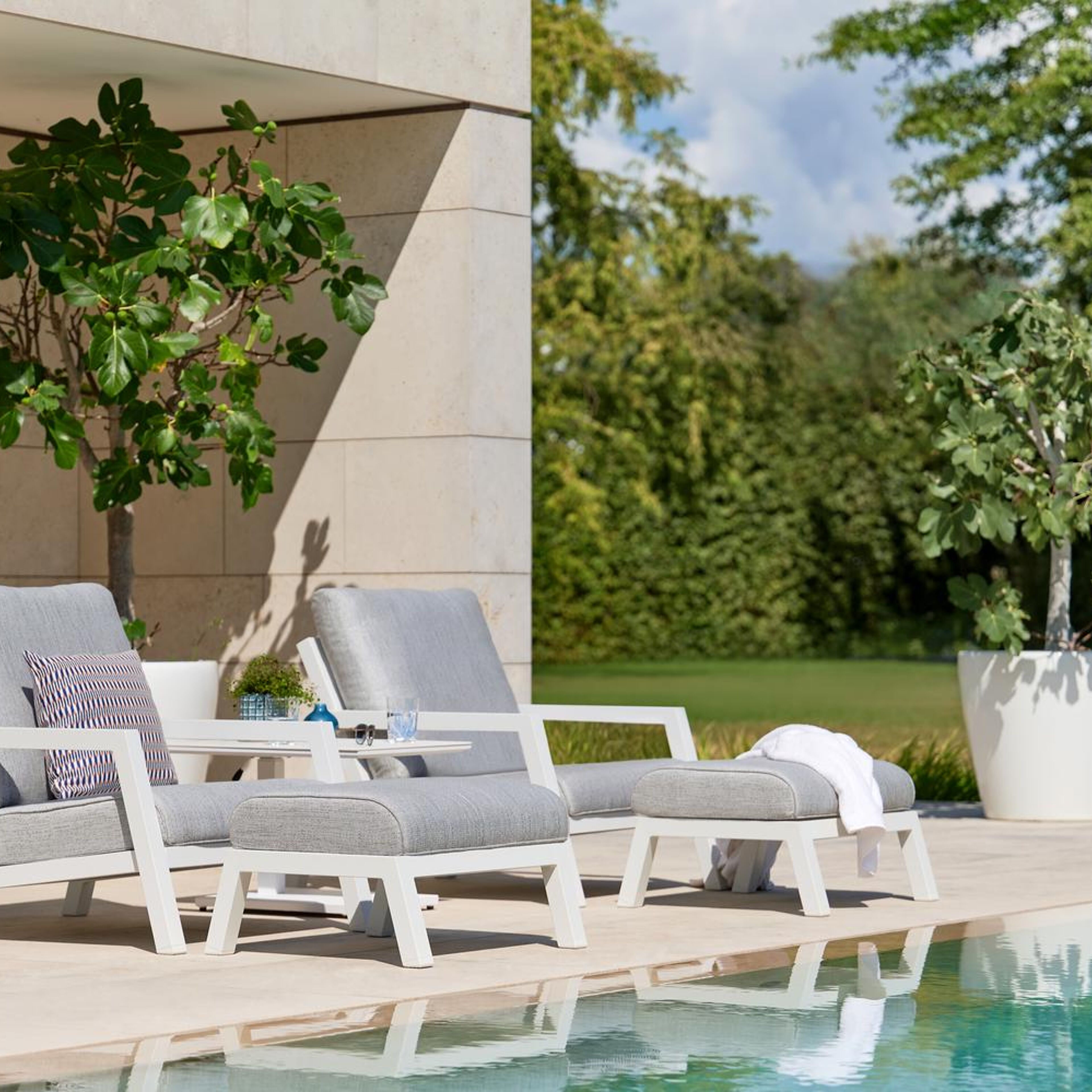 Cirello loungestoel in wit aluminium met catania black all weather cosytica kussen | Exterioo tuinmeubelen