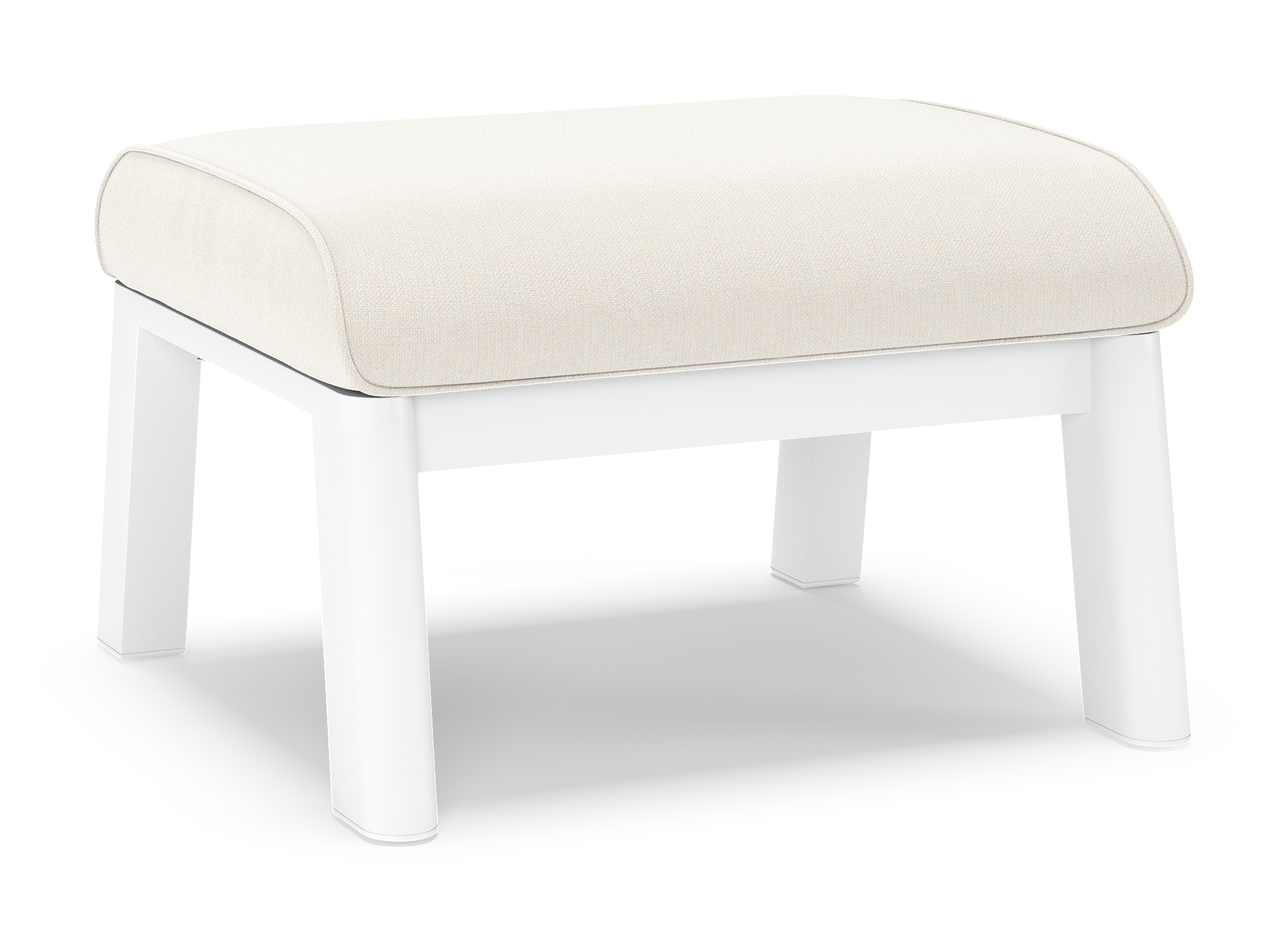 Cirello poef in wit aluminium met savane white all weather sunbrella® luxe kussen | Exterioo tuinmeubelen