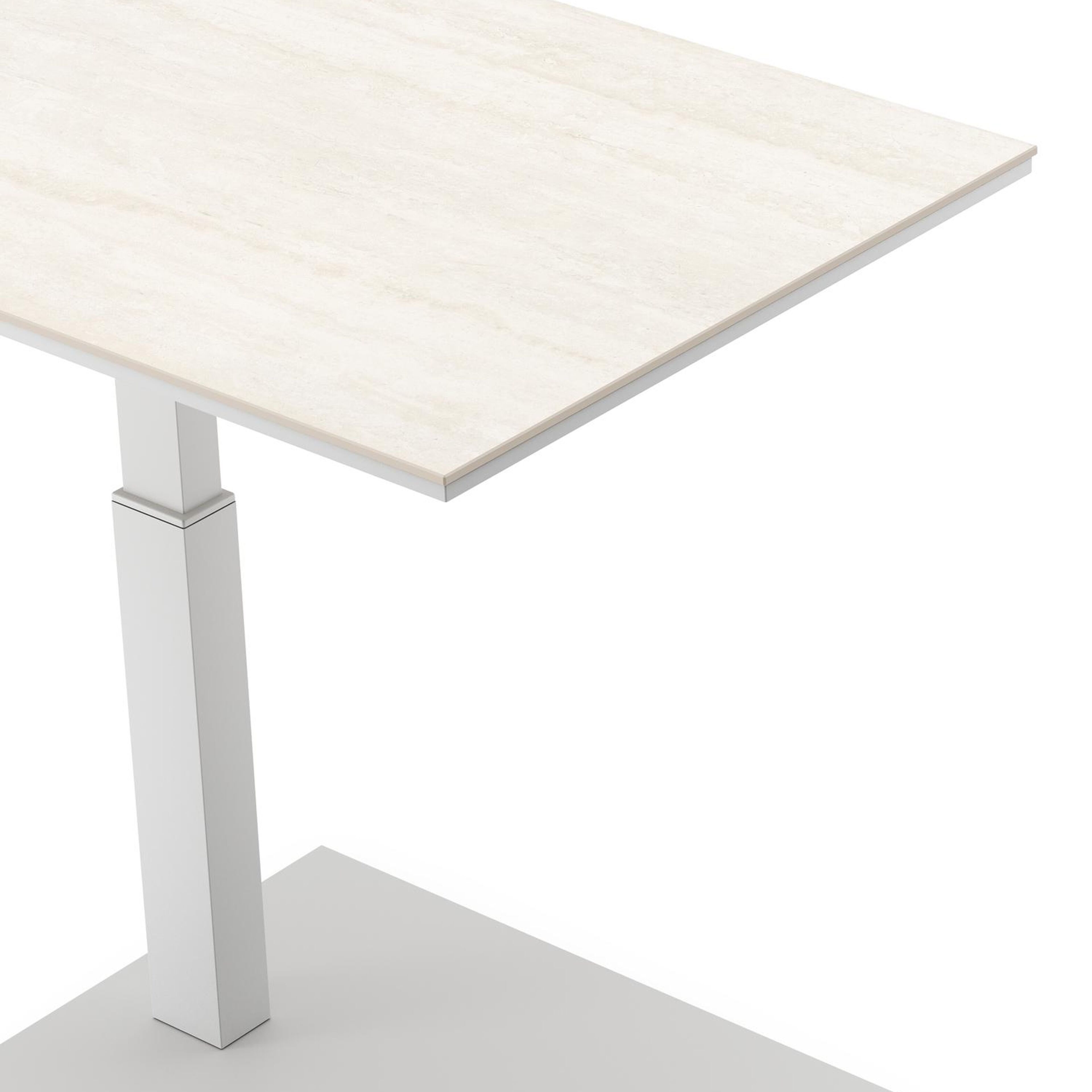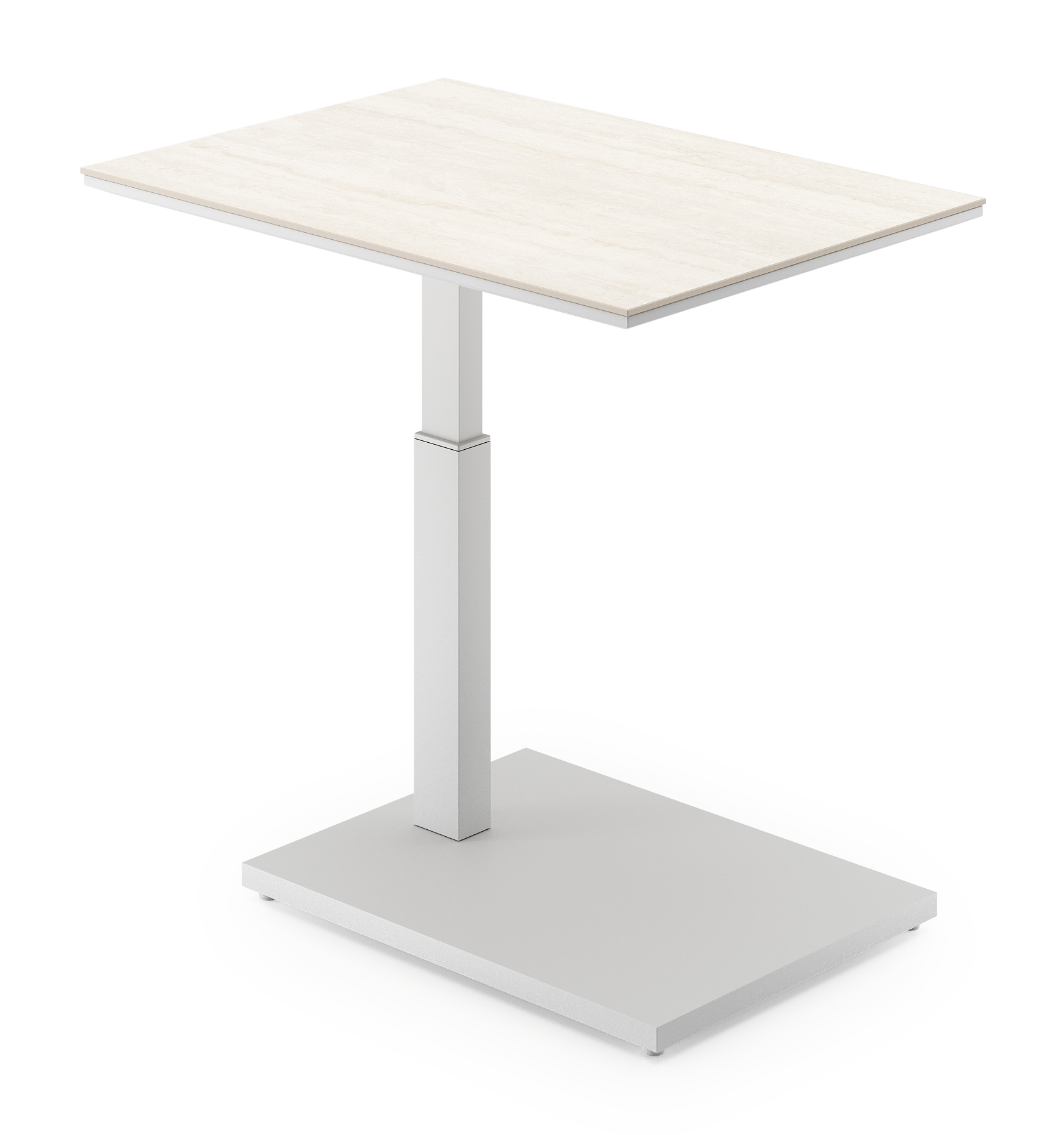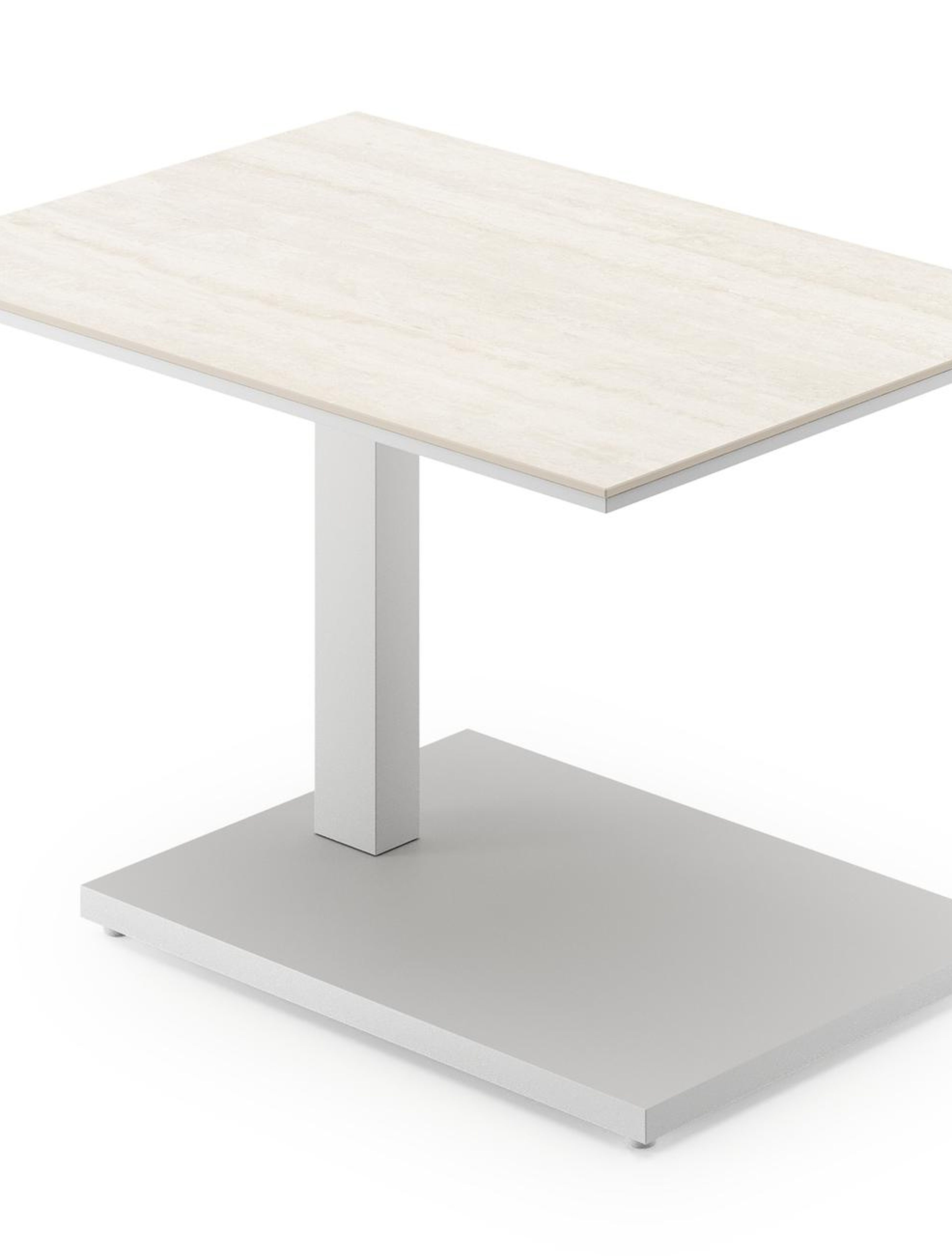 Cirello pop-up bijzettafel rechthoekig in wit aluminium en volkeramiek Travertino Bianco - L 70 x B 50 x H 44 cm | Exterioo tuinmeubelen