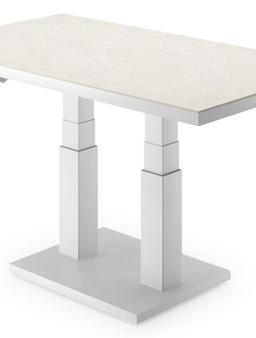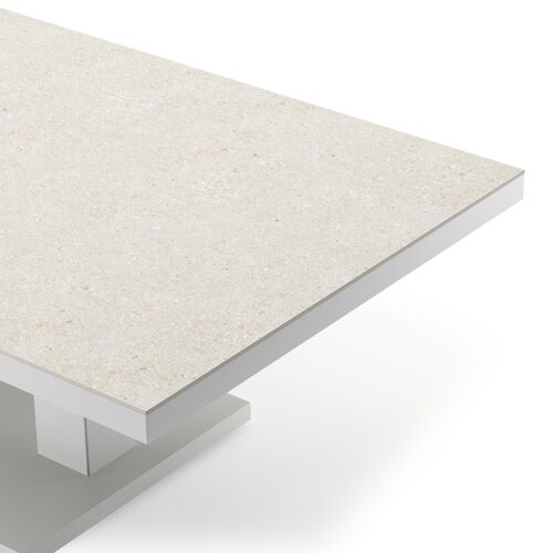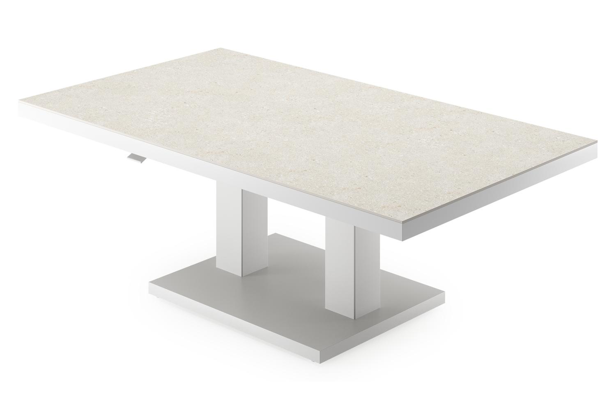 Cirello Pop up loungetafel in wit aluminium en beige volkeramiek - L 140 x B 80 x H 71,6 cm | Exterioo