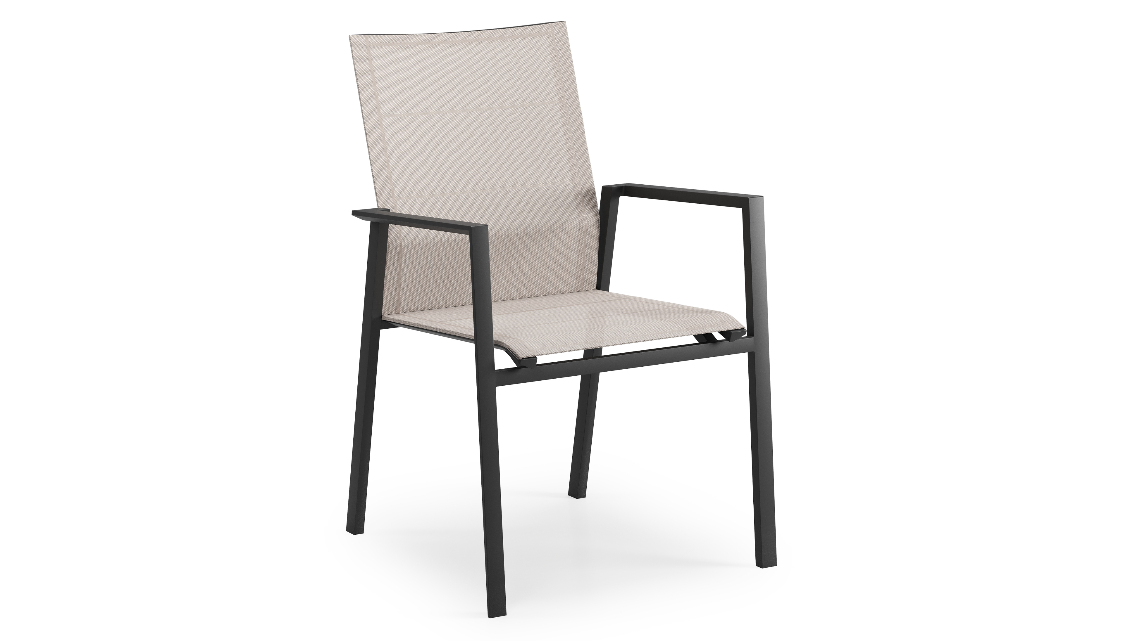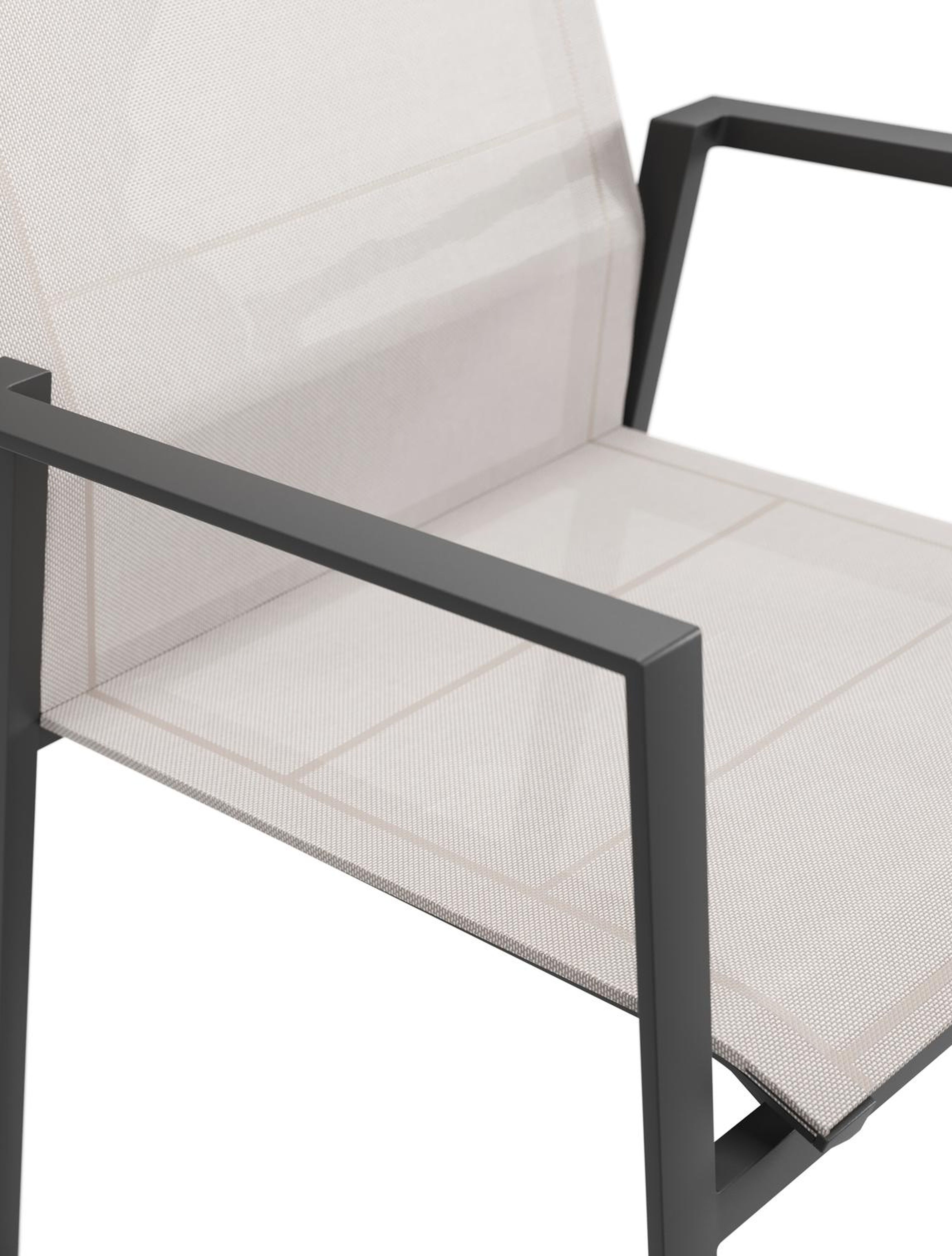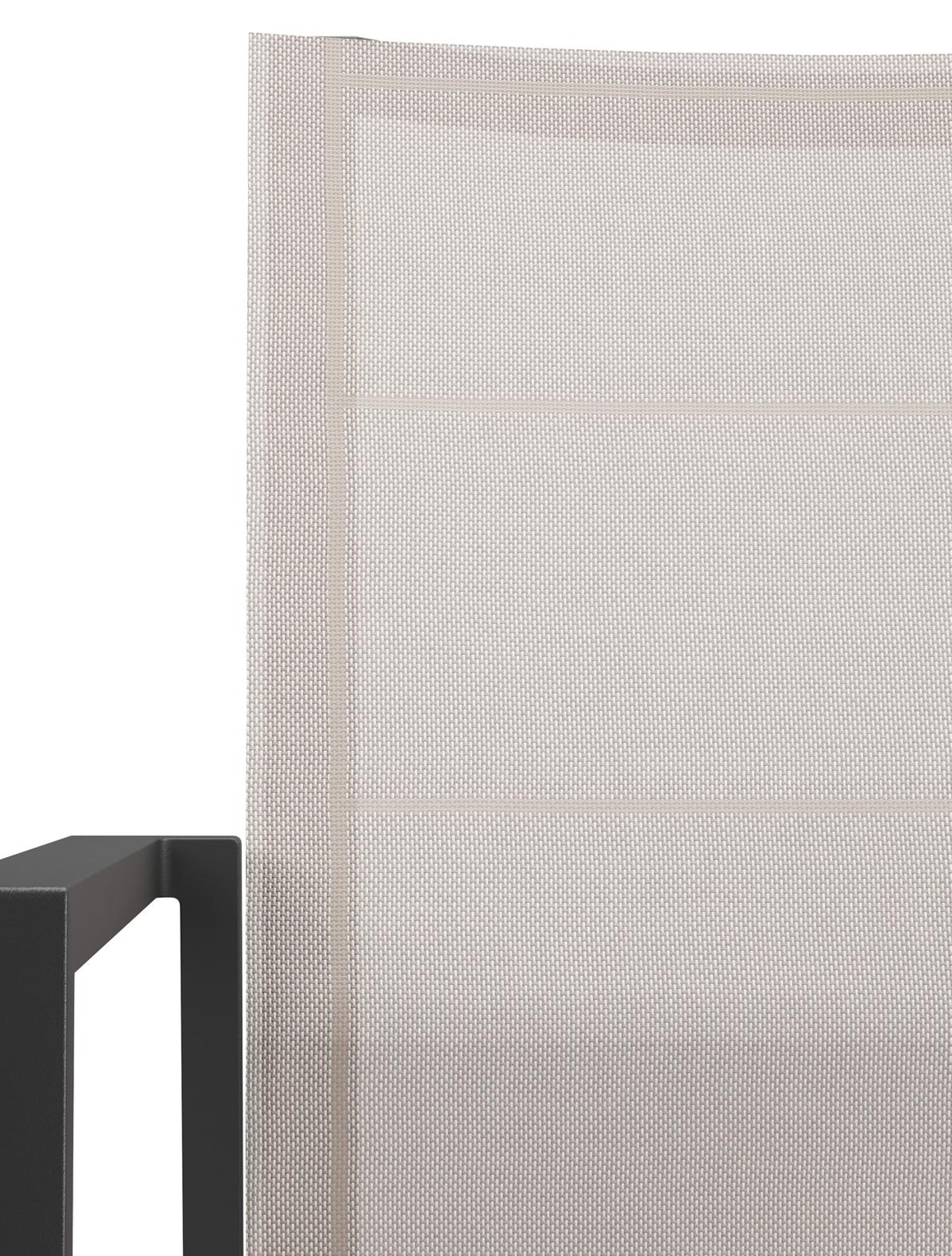 Het frame van de tuinstoel is gemaakt uit roestvrij aluminium, een sterk, maar toch licht materiaal dat makkelijk verplaatsbaar is. Het oppervlak is glad afgewerkt waardoor het geen vuil aantrekt en onderhoudsvriendelijk is. De poedercoating zorgt voor de UV- en weerbestendigheid van je meubel. textileen is een bekleding die bestaat uit polyester draden met een pvc-coating. textileen is een weerbestendig, vormvast en sneldrogend materiaal. Dankzij de open structuur is het een ademende bekleding en de elasticiteit garandeert een geweldig zitcomfort. De samenstelling maakt het tevens een erg duurzaam materiaal. Single textileen bestaat uit 1 laag textileen aan het zitvlak en de rug.