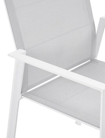 De Lioni is een stapelbare stoel in ons Bristol A là Carte gamma. Hij is gemaakt van aluminium en is hierdoor roestvrij. De zitting en rugleuning zijn gemaakt van textileen, een geweven structuur die zorgt voor een comfortabele zitting.