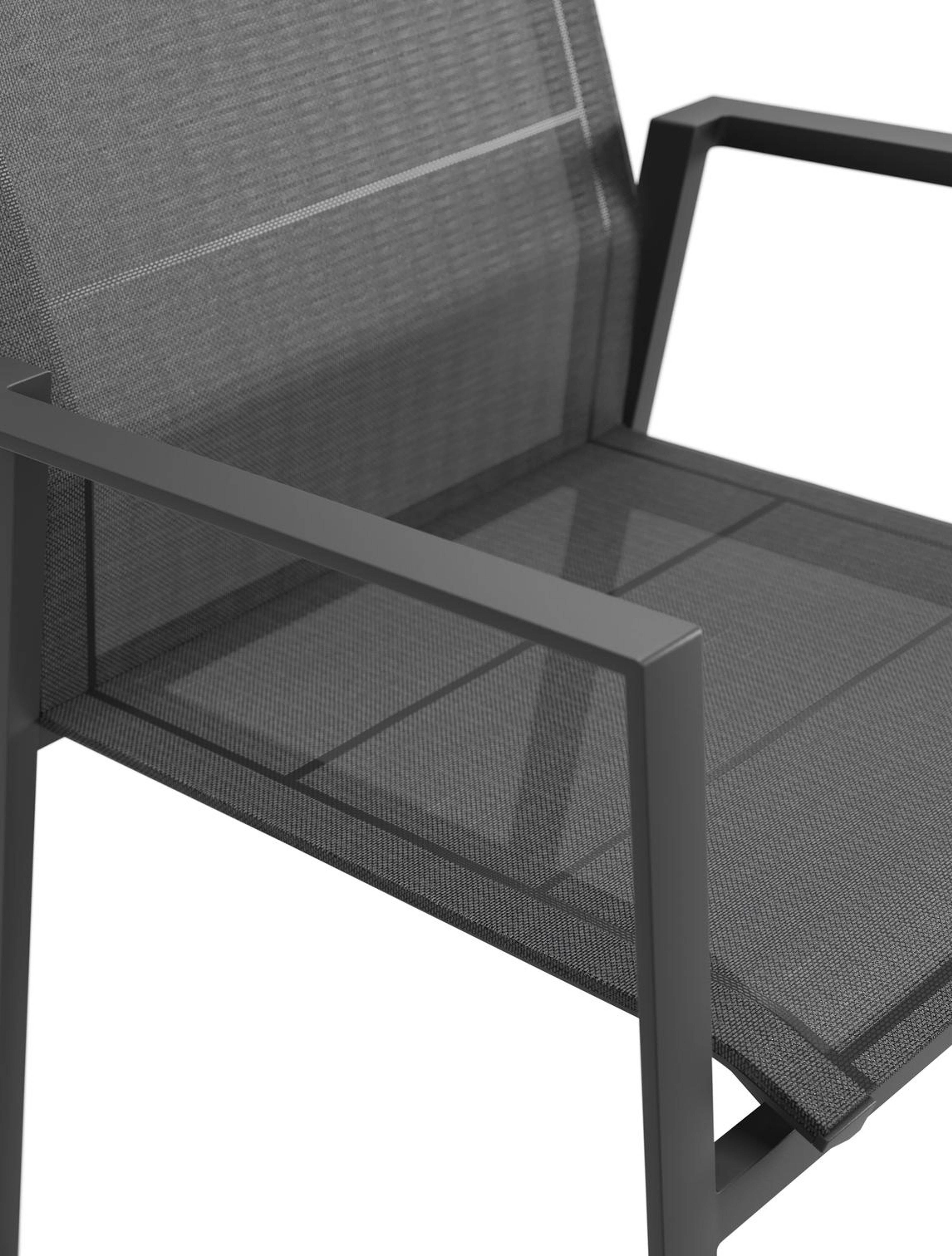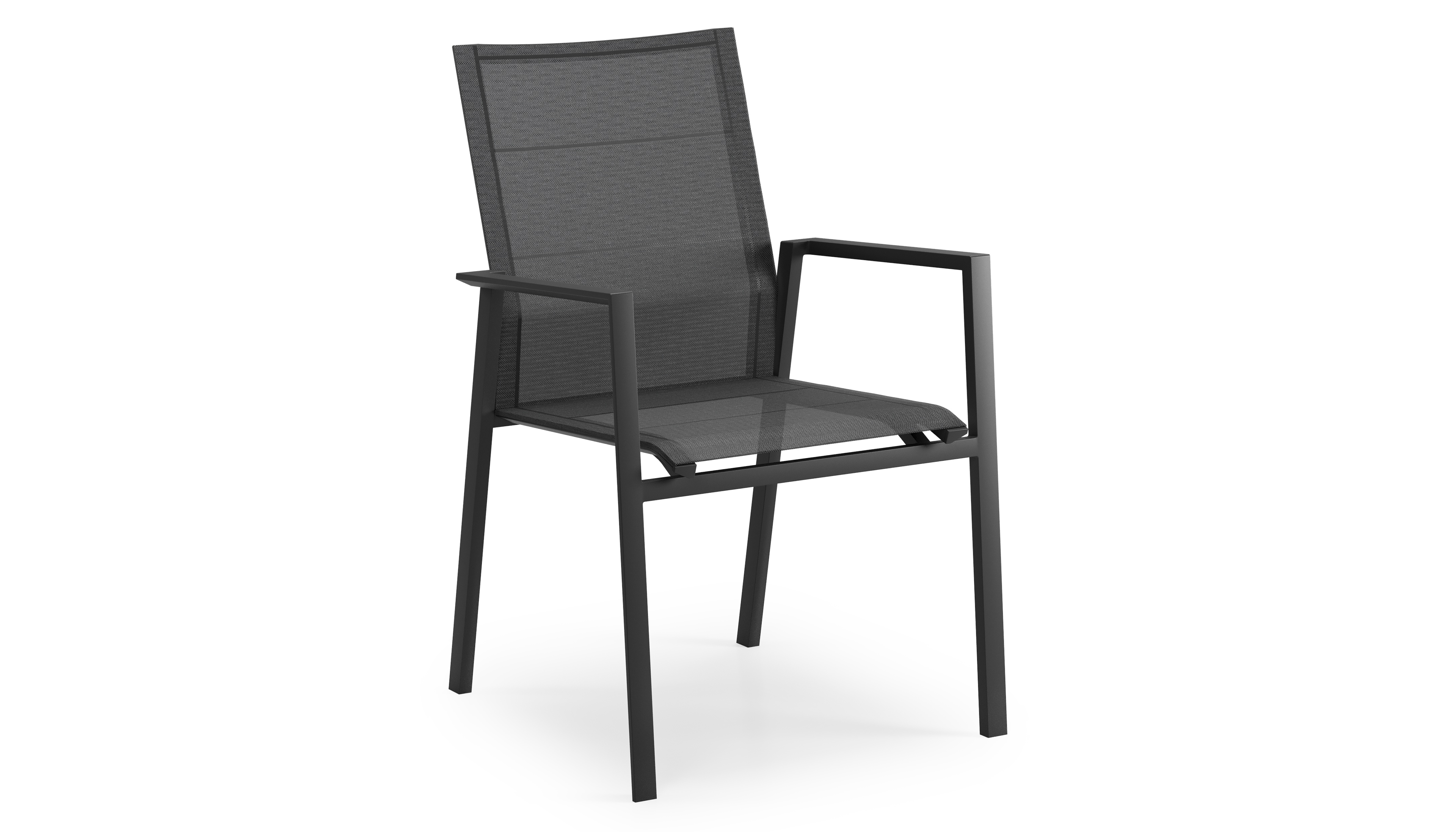 De Cirello is een stapelbare stoel in ons Bristol A là Carte gamma. Hij is gemaakt van aluminium en is hierdoor roestvrij. De zitting en rugleuning zijn gemaakt van textileen, een geweven structuur die zorgt voor een comfortabele zitting.