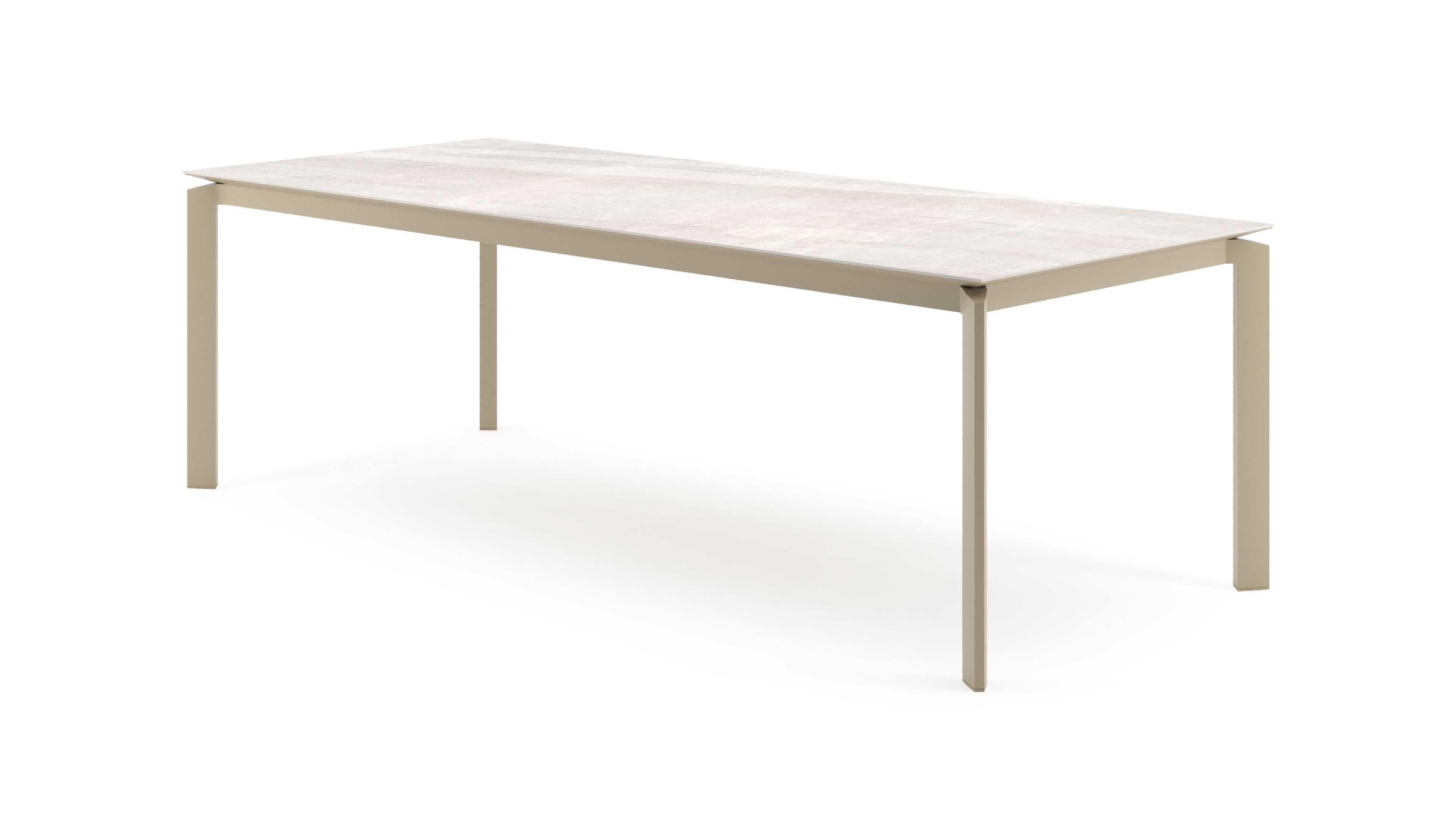 De Cirello tuintafel heeft een modern design. De tafelpoten staan inwaarts gericht naar het middelpunt van de tafel. Bovendien zorgt het frame ervoor dat het tafelblad zweeft boven het frame.