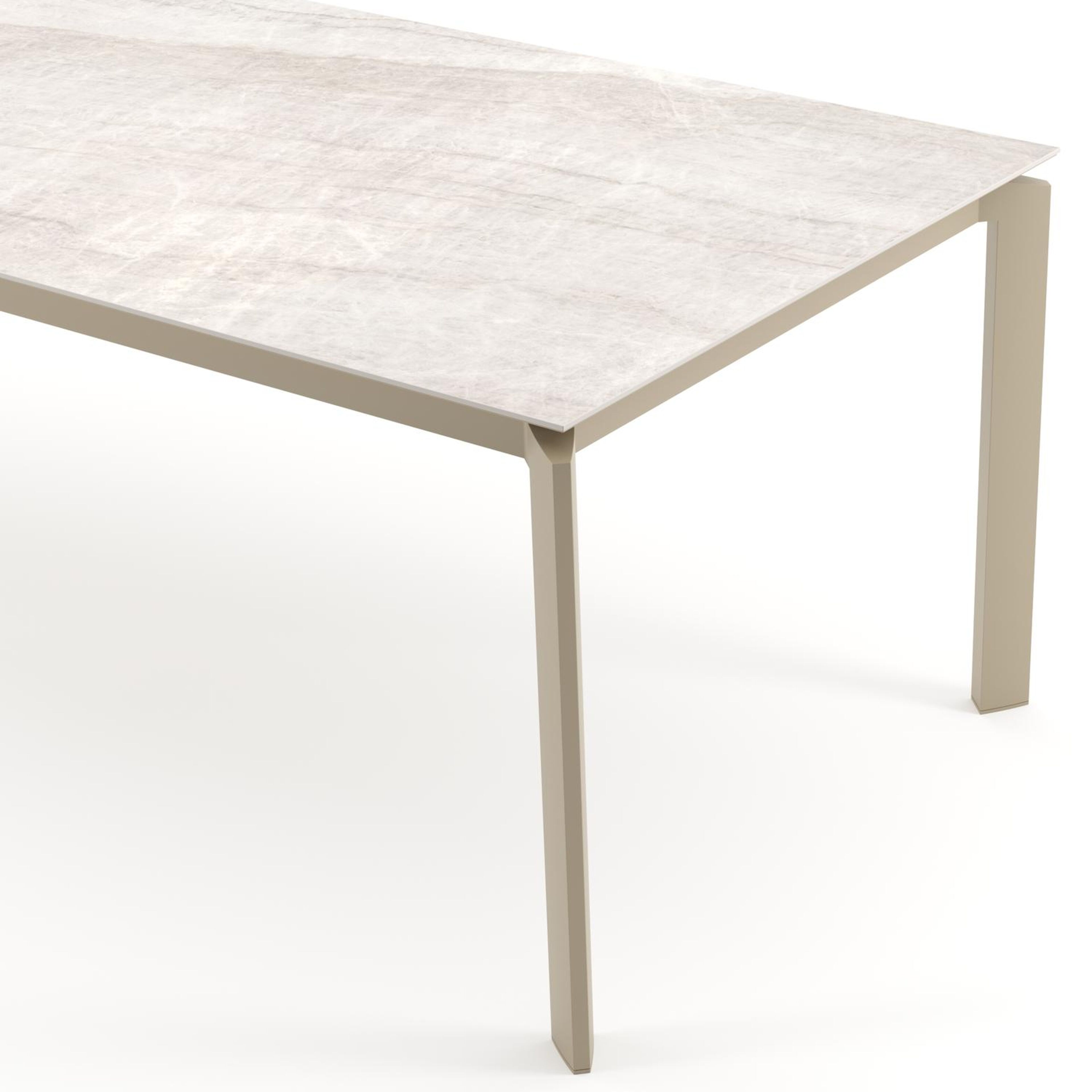 Het frame van de tafel is gemaakt uit roestvrij aluminium, een sterk, maar toch licht materiaal dat makkelijk verplaatsbaar is. Het oppervlak is glad afgewerkt waardoor het geen vuil aantrekt en onderhoudsvriendelijk is. De poedercoating zorgt voor de UV- en weerbestendigheid van je meubel.