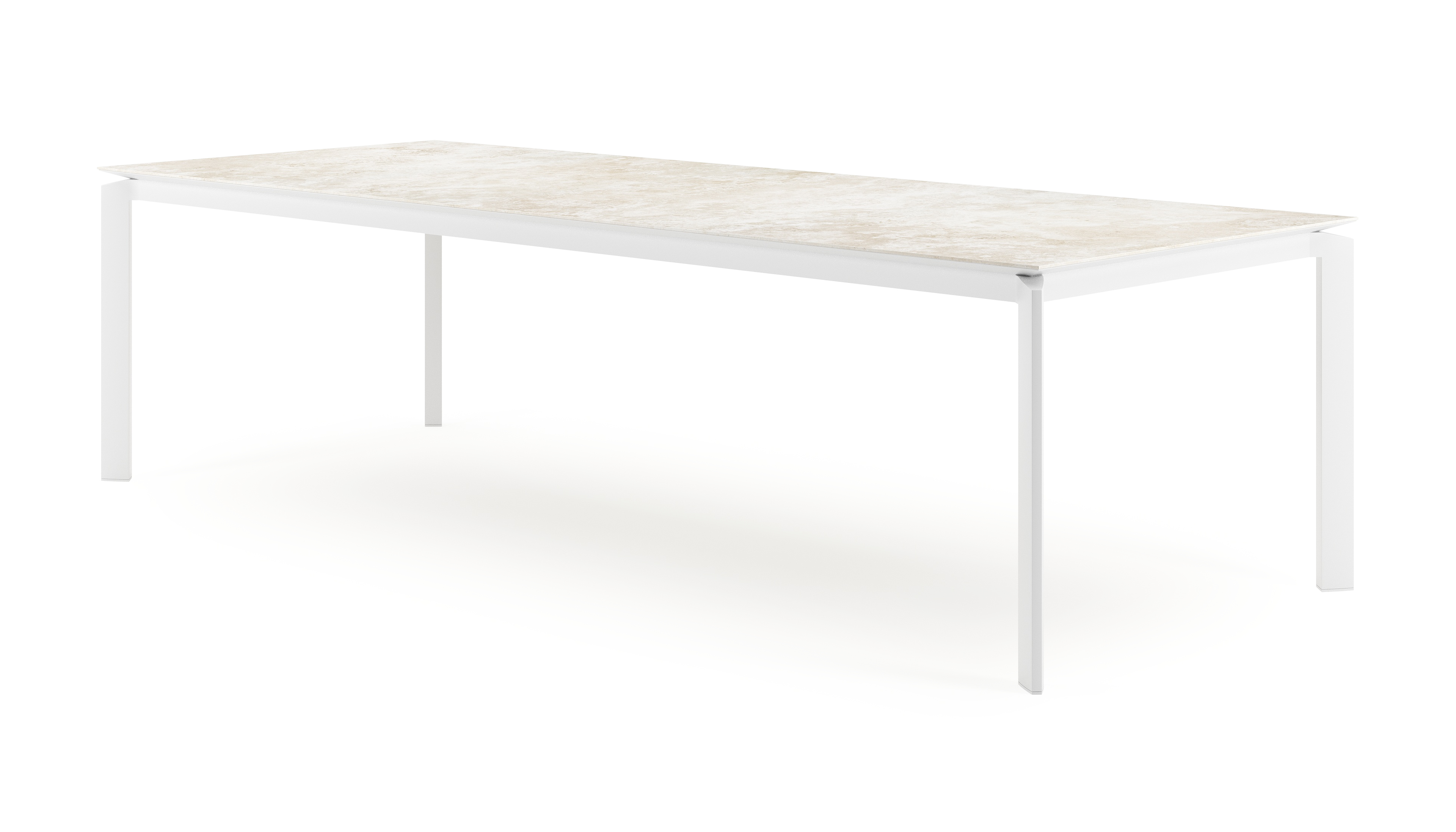 De Cirello tuintafel heeft een modern design. De tafelpoten staan inwaarts gericht naar het middelpunt van de tafel. Bovendien zorgt het frame ervoor dat het tafelblad zweeft boven het frame.