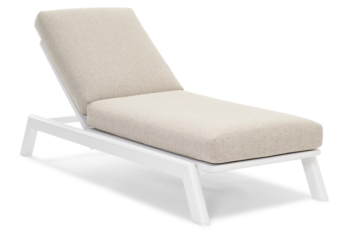 Cirello verstelbaar ligbed met pompsysteem in wit aluminium met marbella beige all weather cosytica kussen | Exterioo