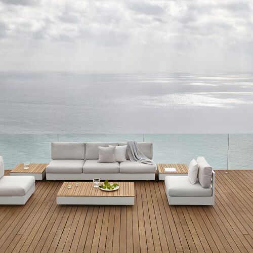 De Como loungetafel is een moderne tafel met zwevend effect. De loungetafel bestaat uit roestvrij aluminium en is afgewerkt met een tafelblad in teak. De Como loungetafels is een grote loungetafel die perfect past bij jouw lounge.