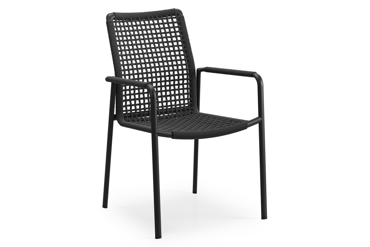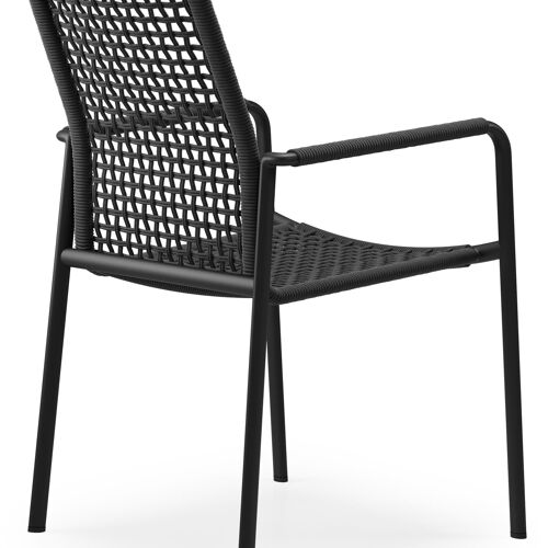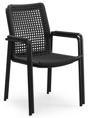 Como stapelbare tuinstoel in zwart aluminium en zwart vierkant geweven rope | Exterioo