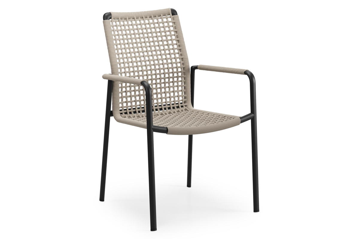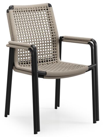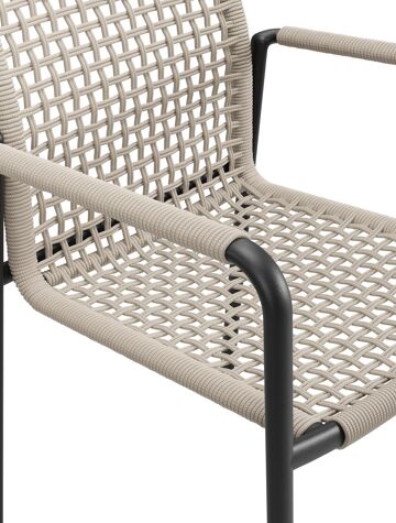 Como tuinstoel in zwart aluminium en beige vierkant geweven ronde rope | Exterioo
