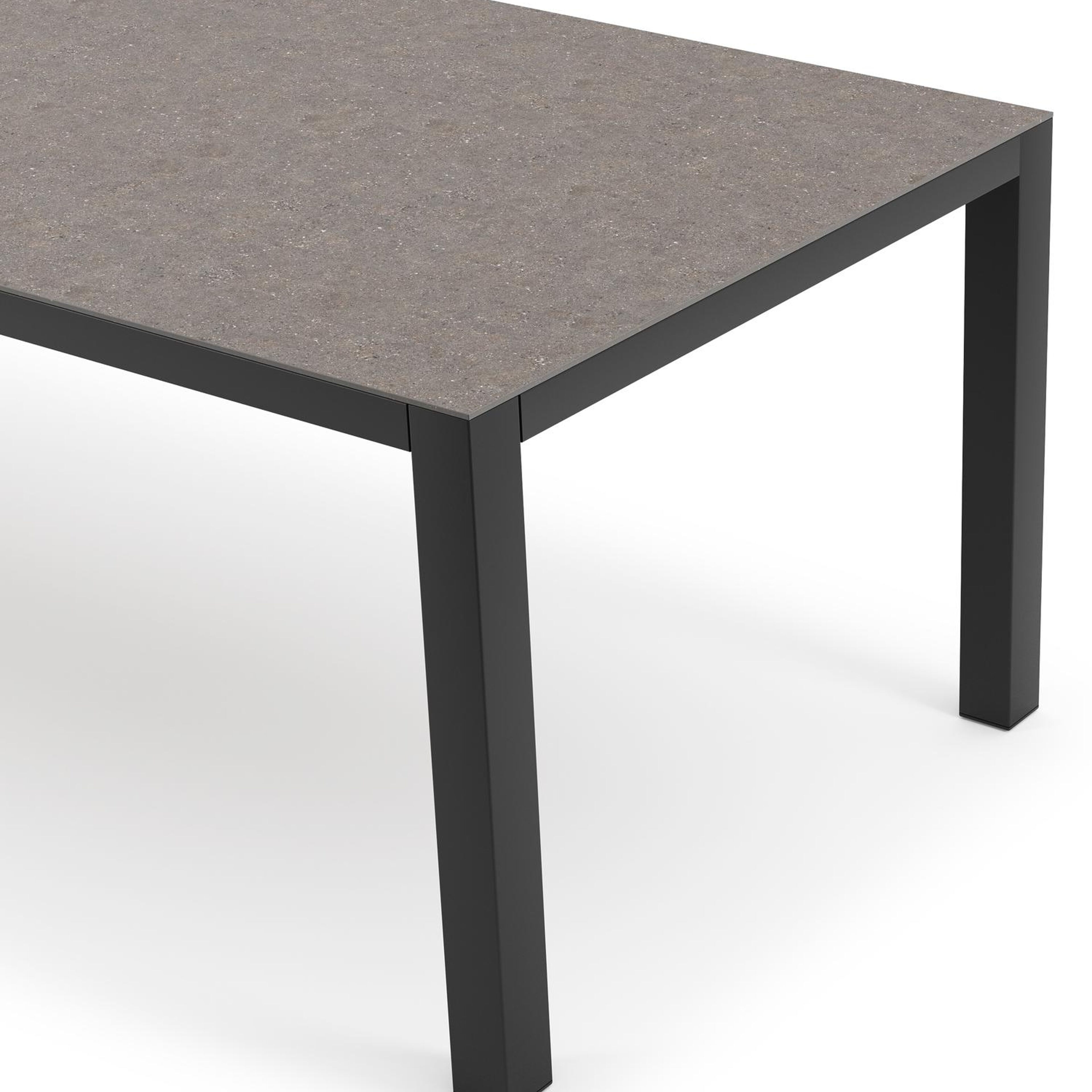 Het Wulong tafelblad heeft een donkerder oppervlak met grijs-bruintinten en korrelige details. Het blad werd geïnspireerd op één van de spectaculairste kalksteenformaties van Wulong in China, gekend om zijn kracht en karakter. Met dit tafelblad haal je de kracht van de natuur naar je tuin.