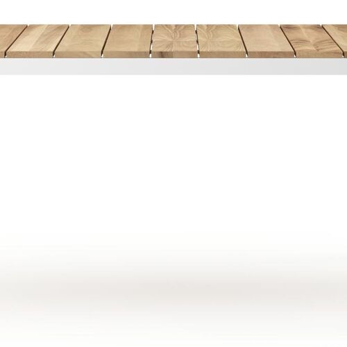 Een tafelblad uit teak staat gelijk aan bijzondere kwaliteit en natuurlijk design. Teak is een kwalitatieve houtsoort gekenmerkt door zijn hardheid. Aangezien hout leeft, kan de structuur of kleur licht anders zijn dan op het beeld weergegeven.