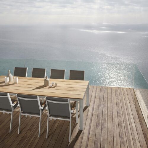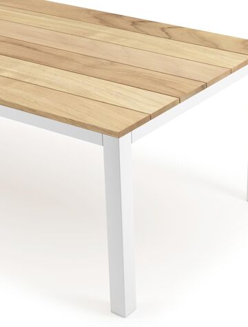 Een tafelblad uit teak staat gelijk aan bijzondere kwaliteit en natuurlijk design. Teak is een kwalitatieve houtsoort gekenmerkt door zijn hardheid. Aangezien hout leeft, kan de structuur of kleur licht anders zijn dan op het beeld weergegeven.