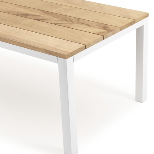 Como tuintafel in wit aluminium en teak - L 240 x B 100 x H 75 cm | Exterioo