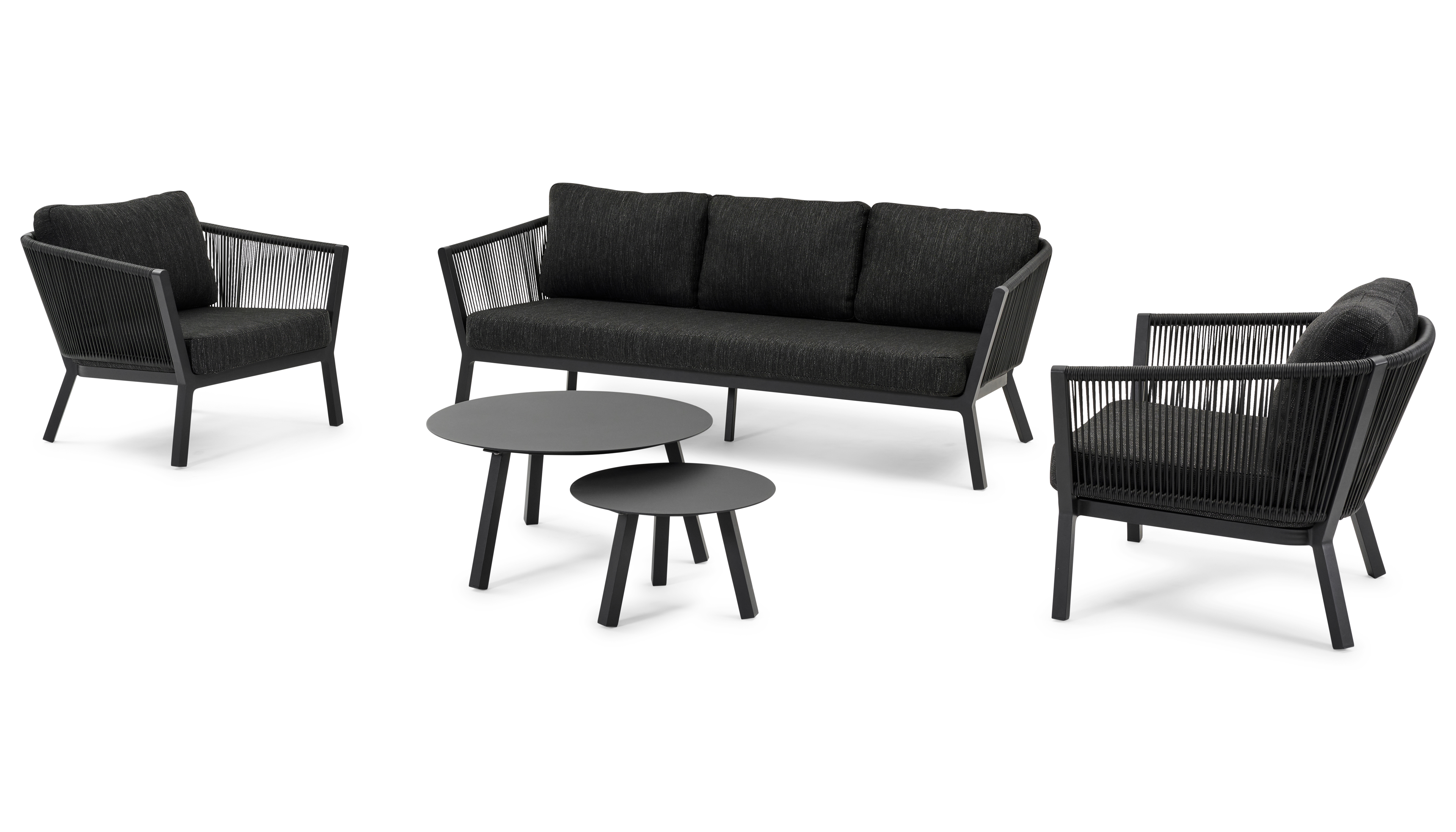 De Cordoba loungeset heeft een trendy en zomerse uitstraling door zijn afwerking in kwalitatieve rope, passend op jouw zonnige terras. Het frame van de lounge is gemaakt uit roestvrij aluminium, maar toch stevig en licht materiaal. De afwerking van de zijden bestaat uit rope, een stevig en trendy materiaal wat zorgt voor een zomerse look. De zwarte Weather+ Softtouch kussens, een zachte en vuilafstotende stof, zijn inclusief. Daarnaast is ook de set van 2 loungetafel uit roestvrij aluminium inclusief. Spendeer geweldige momenten in je tuin met de kwalitatieve Cordoba loungeset.