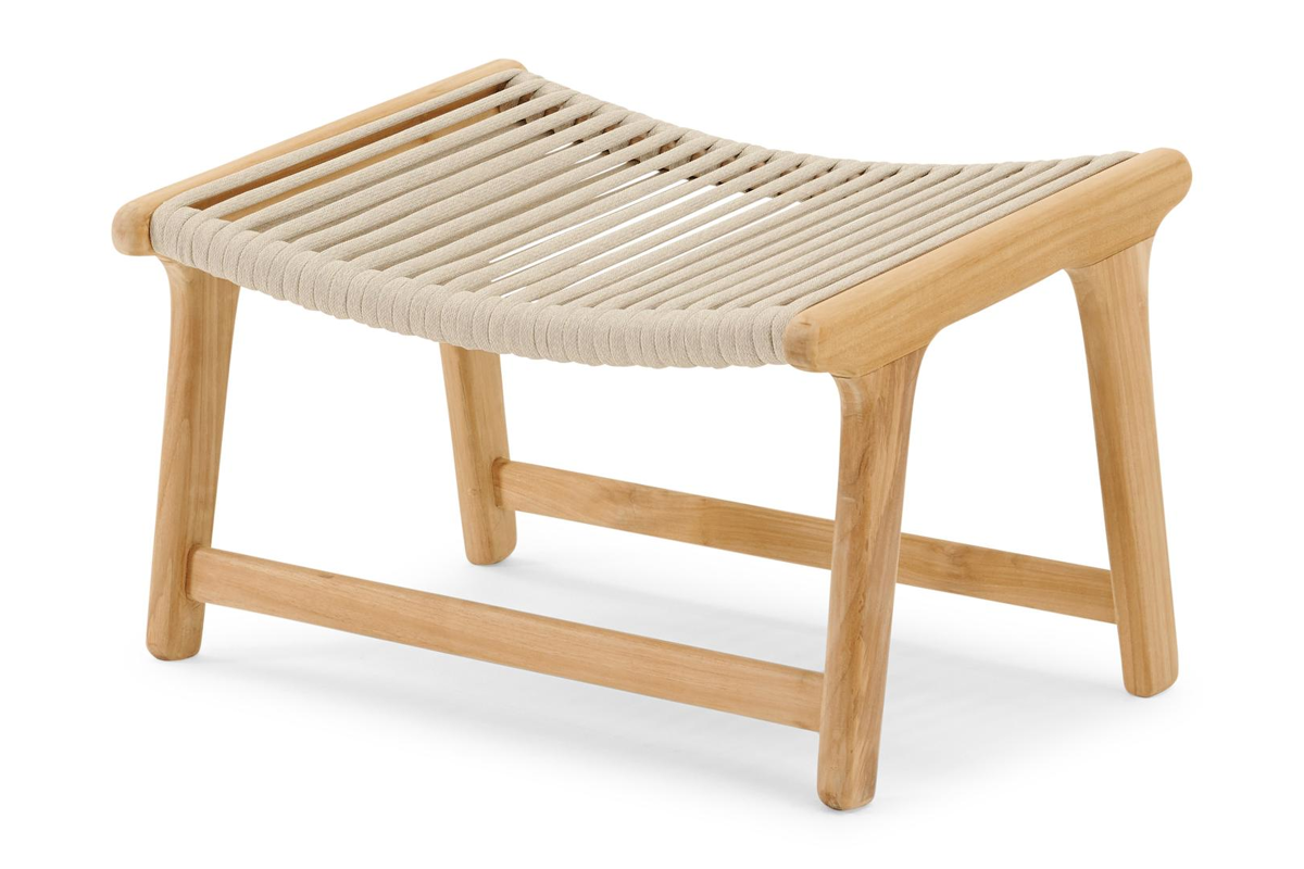 Cosito poef in teak en beige vierkant geweven luxe vlakke rope | Exterioo