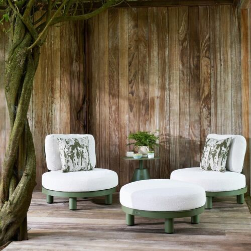 Donato lounge poef in groen aluminium met all weather cosytica Marbella Beige kussen | Exterioo
