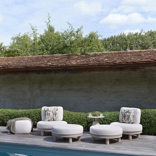 Donato lounge poef in beige aluminium met all weather cosytica Marbella Beige kussen | Exterioo