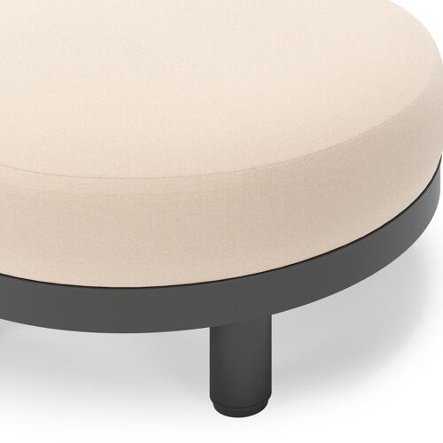 Donato lounge poef in zwart aluminium met All Weather Sunbrella® Luxe Natte Linen Chalk kussen | Exterioo