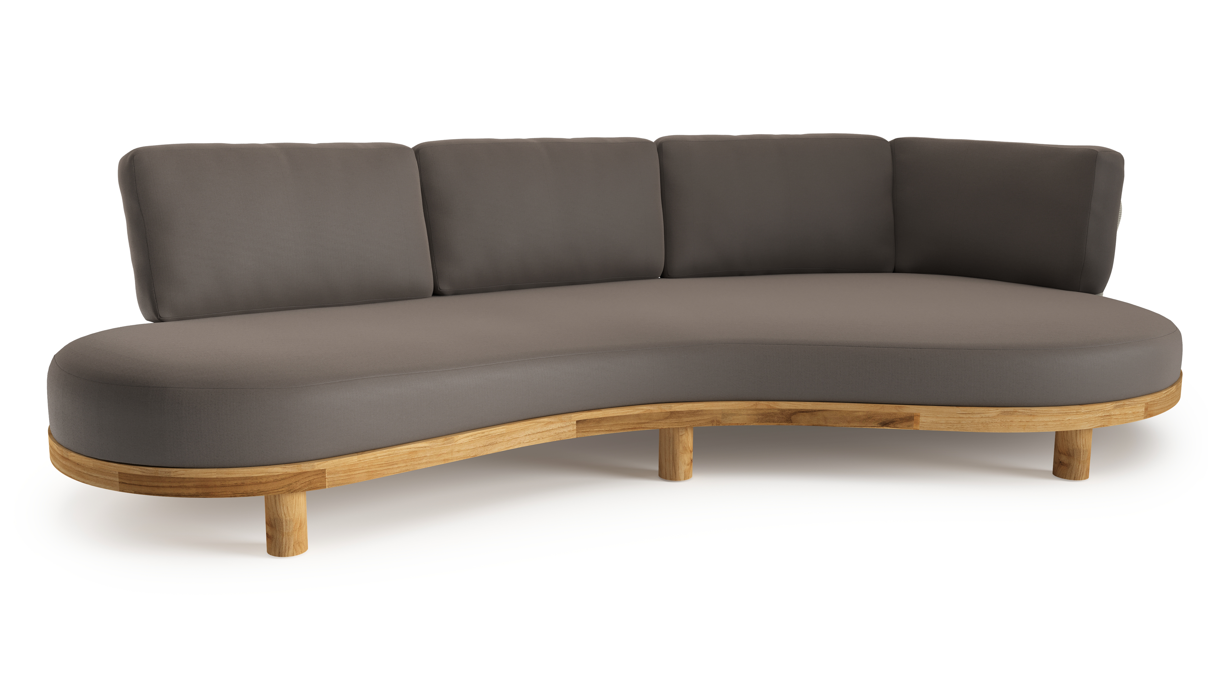 Donato loungebank in teak met natte nature grey all weather sunbrella® luxe kussen | Exterioo tuinmeubelen