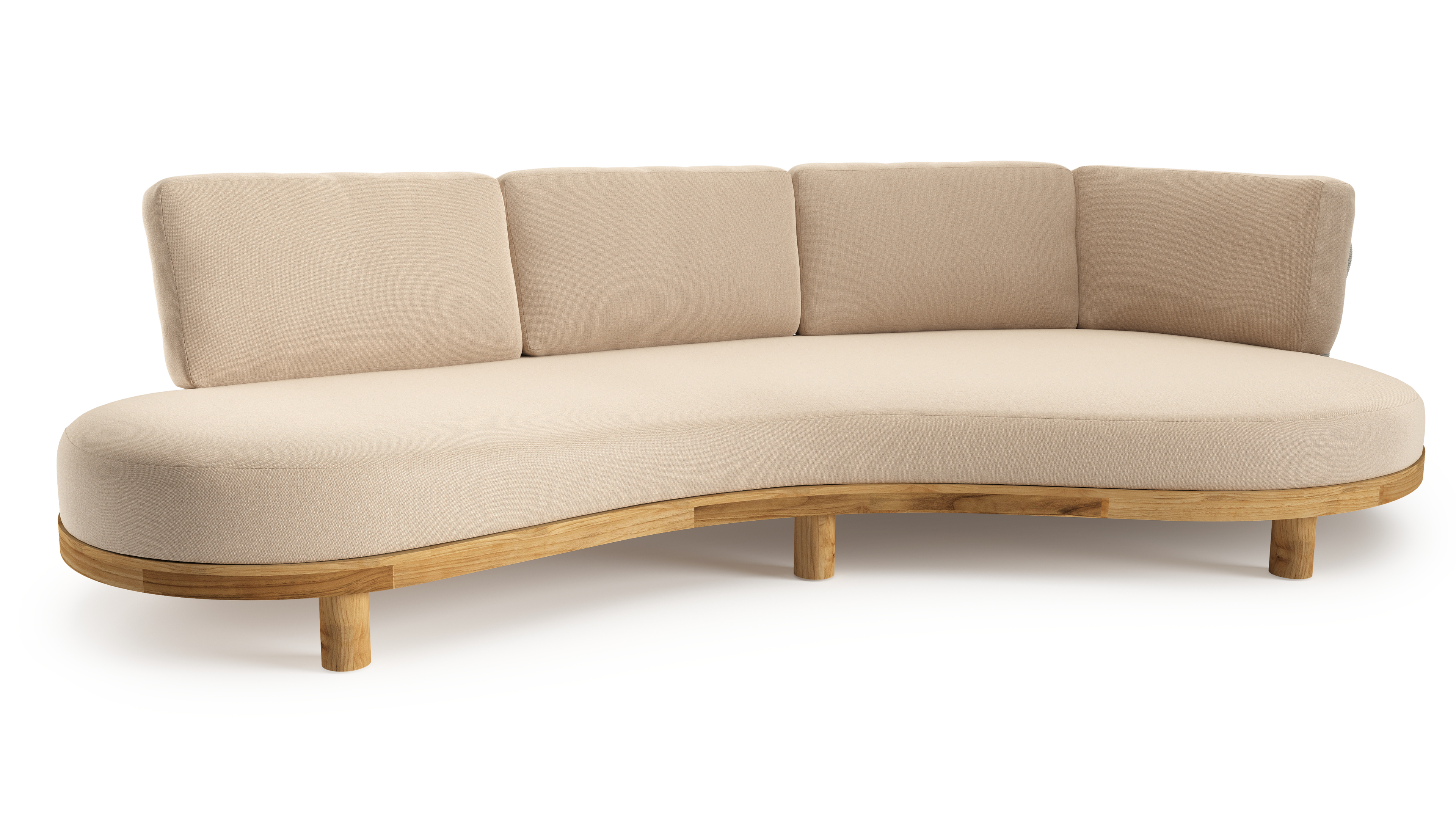 Donato loungebank in teak met natte heather beige all weather sunbrella® luxe kussen | Exterioo tuinmeubelen