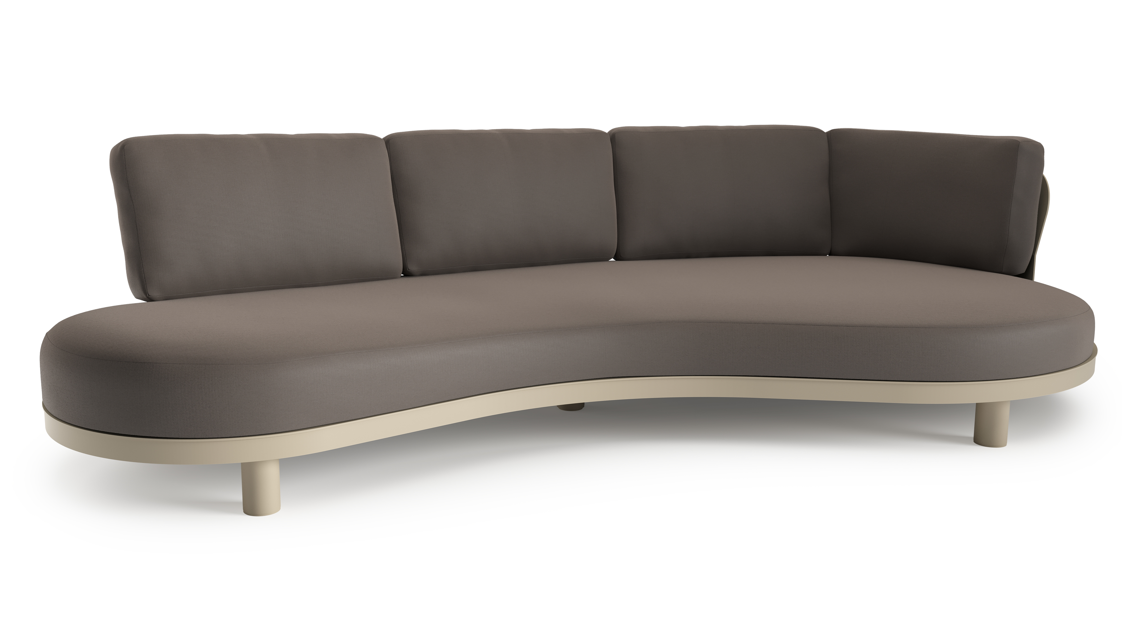 Donato loungebank in beige aluminium met natte nature grey all weather sunbrella® luxe kussen | Exterioo tuinmeubelen