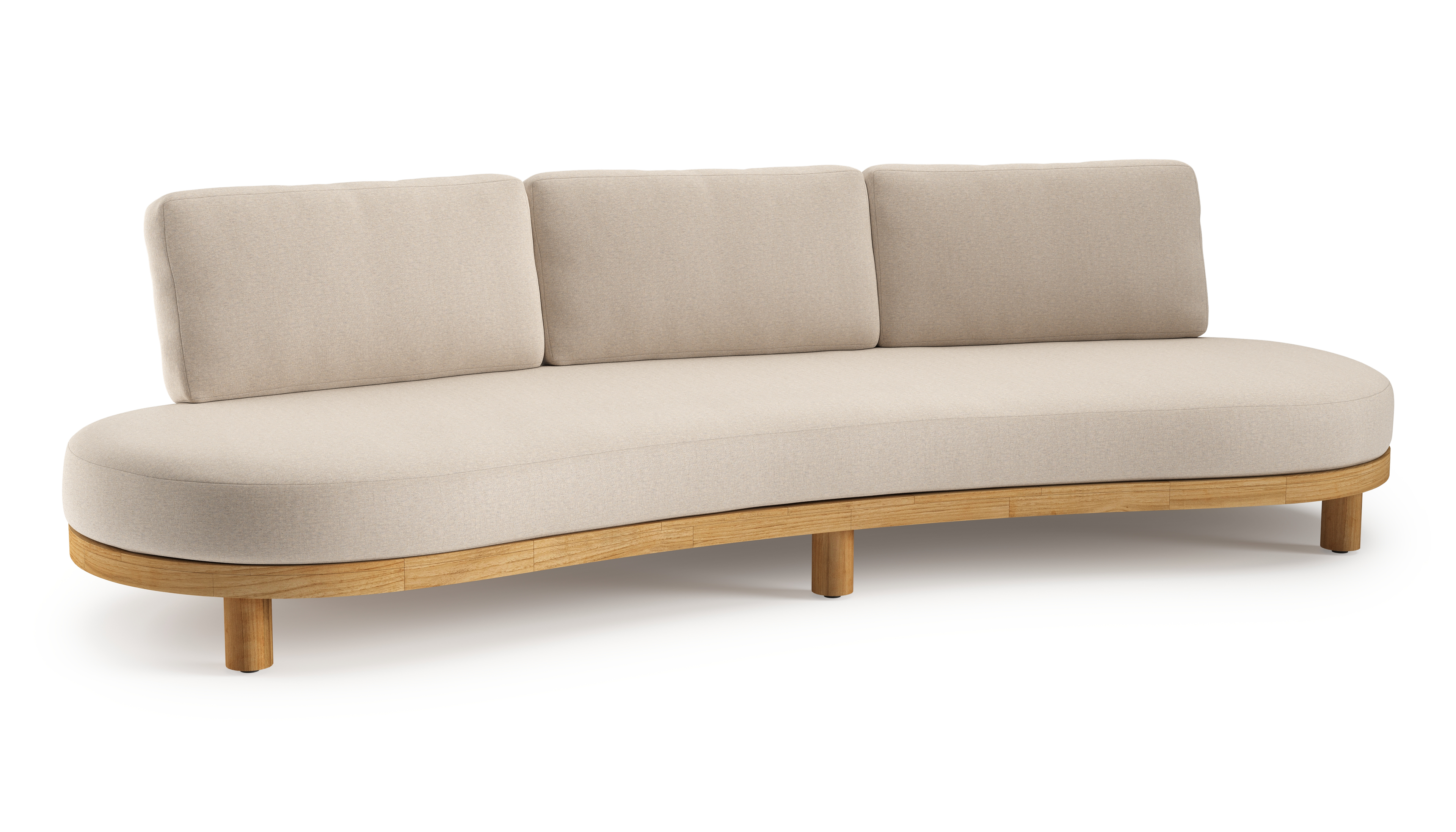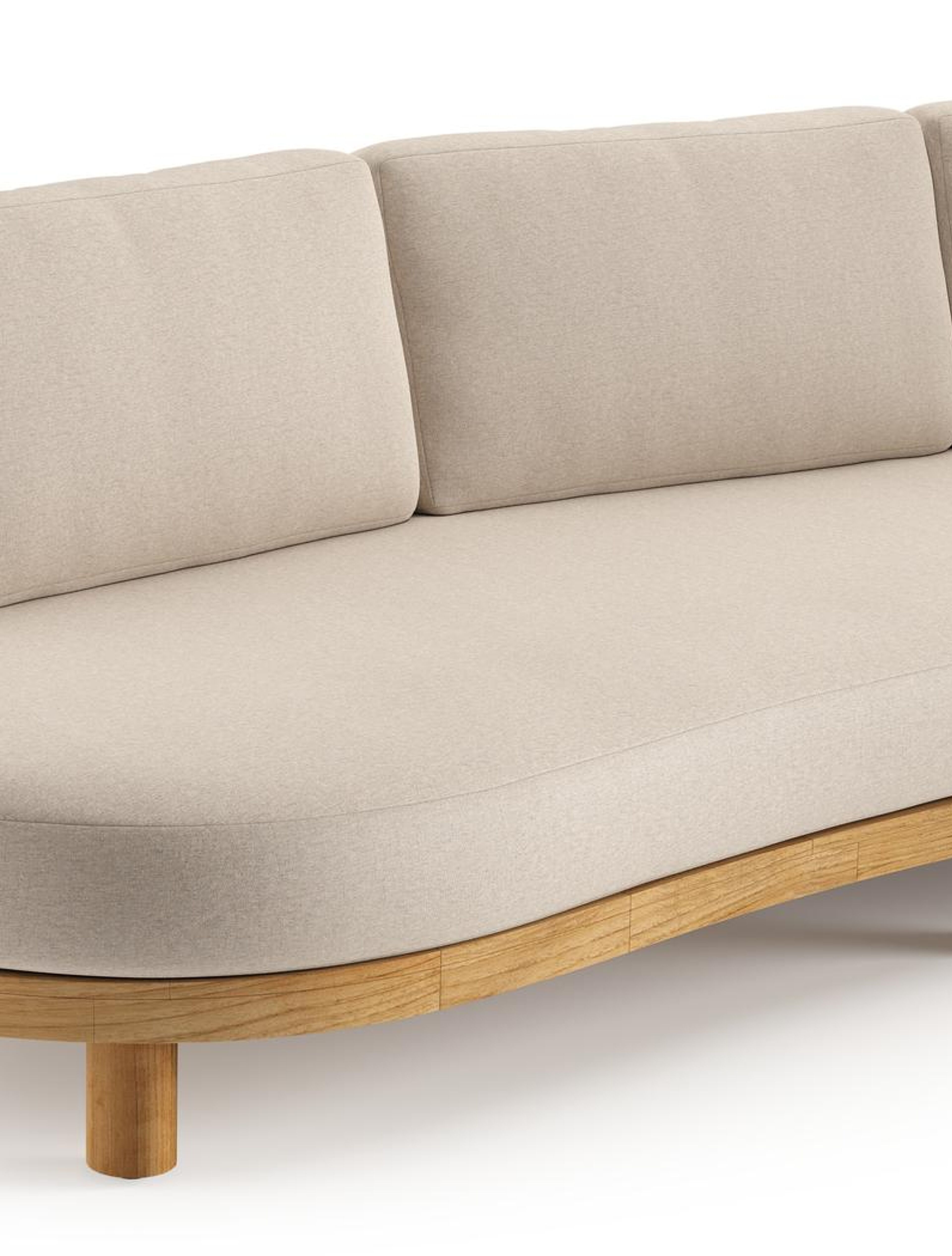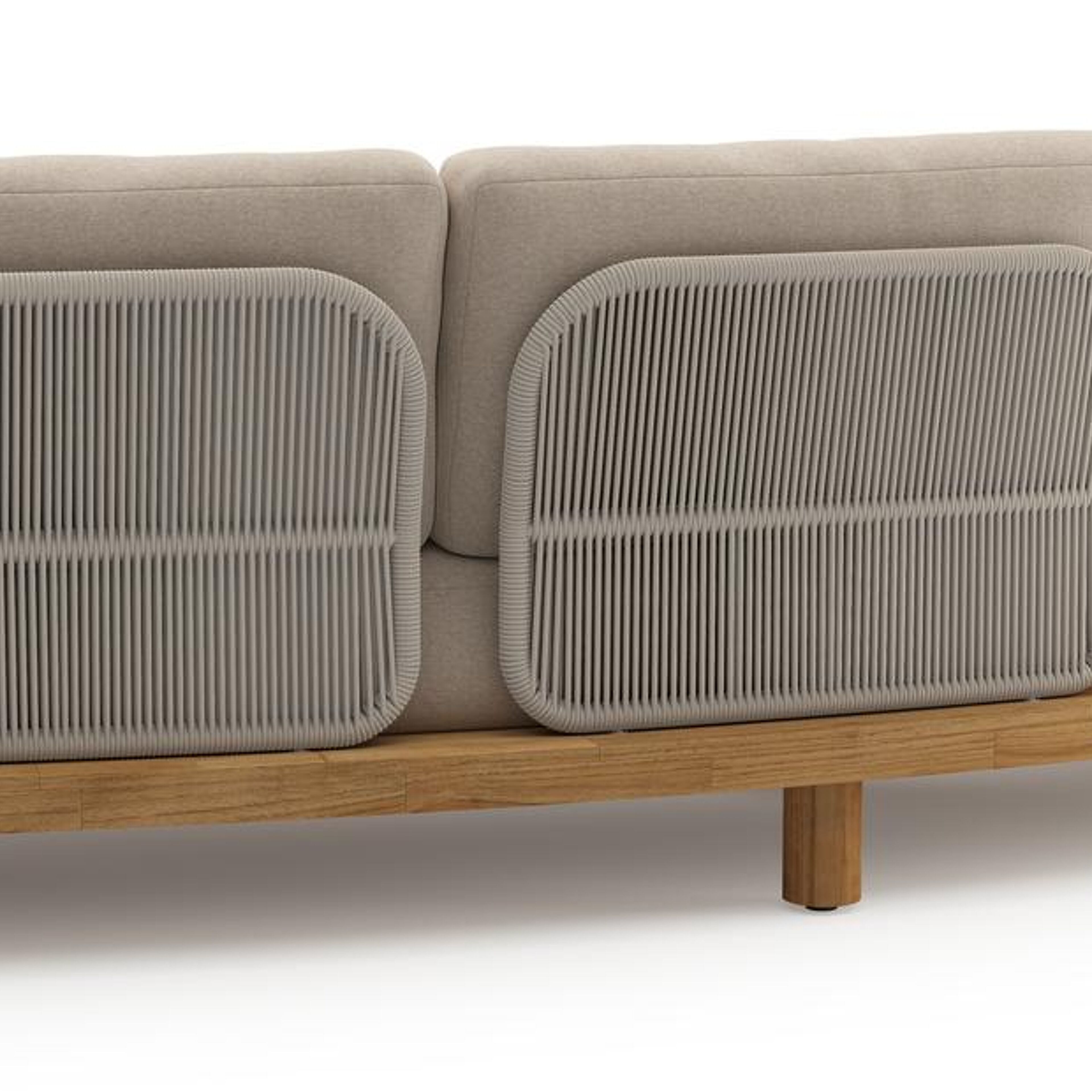 Donato loungebank in teak en beige verticaal geweven ronde rope met all weather sunbrella® luxe Heritage Ash kussen | Exterioo tuinmeubelen