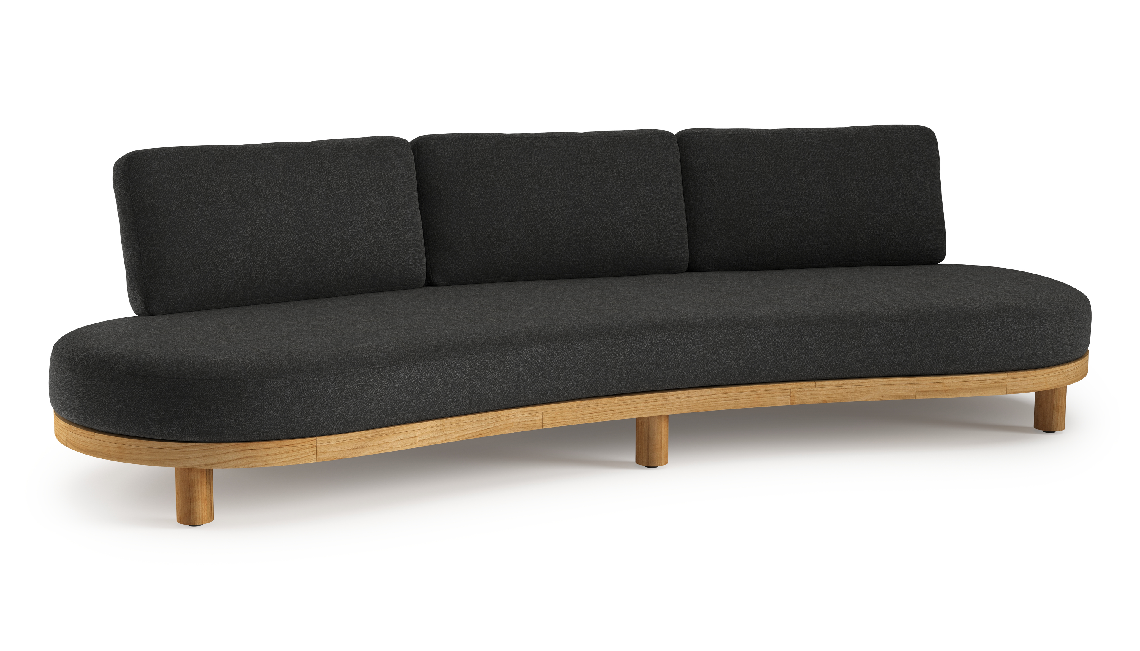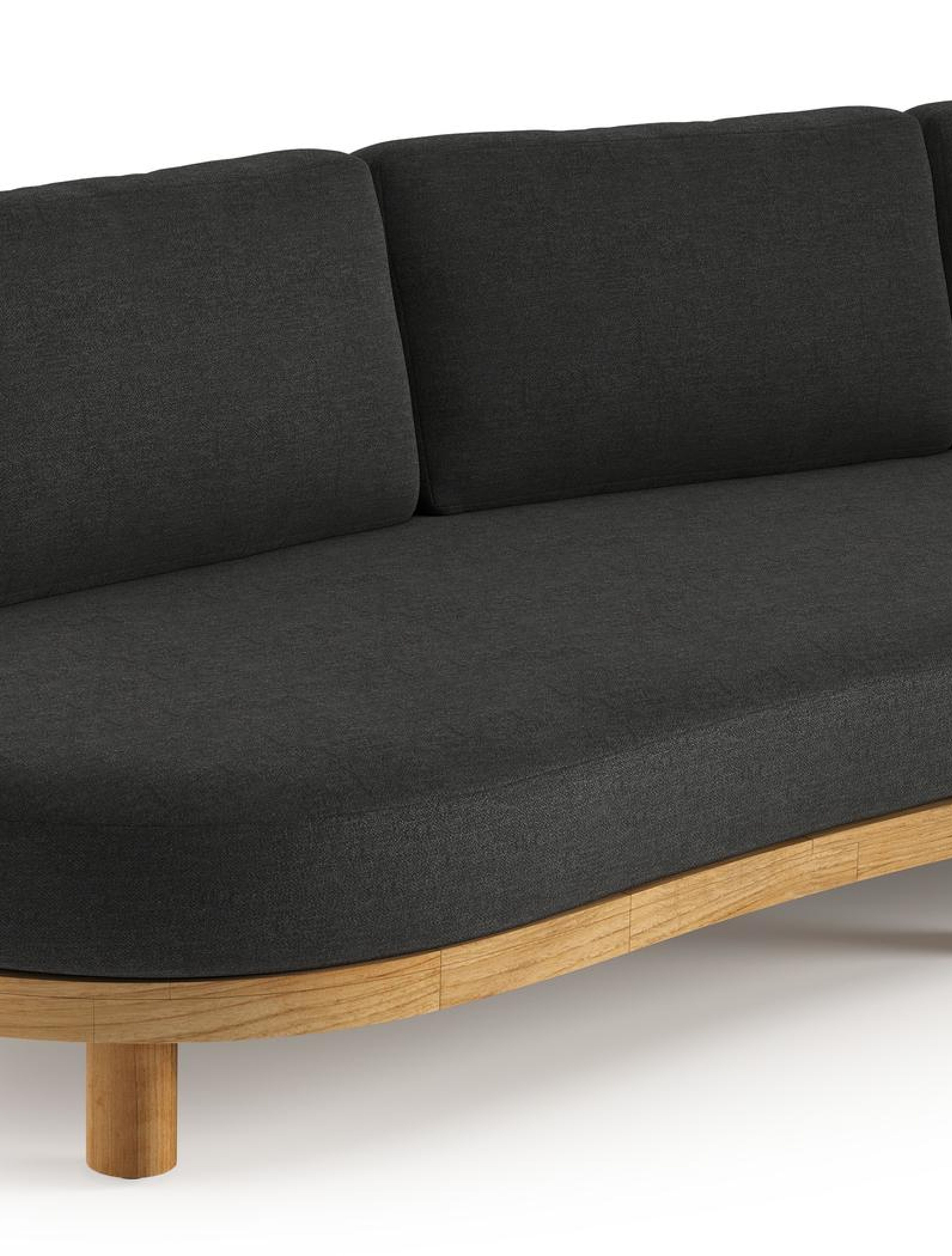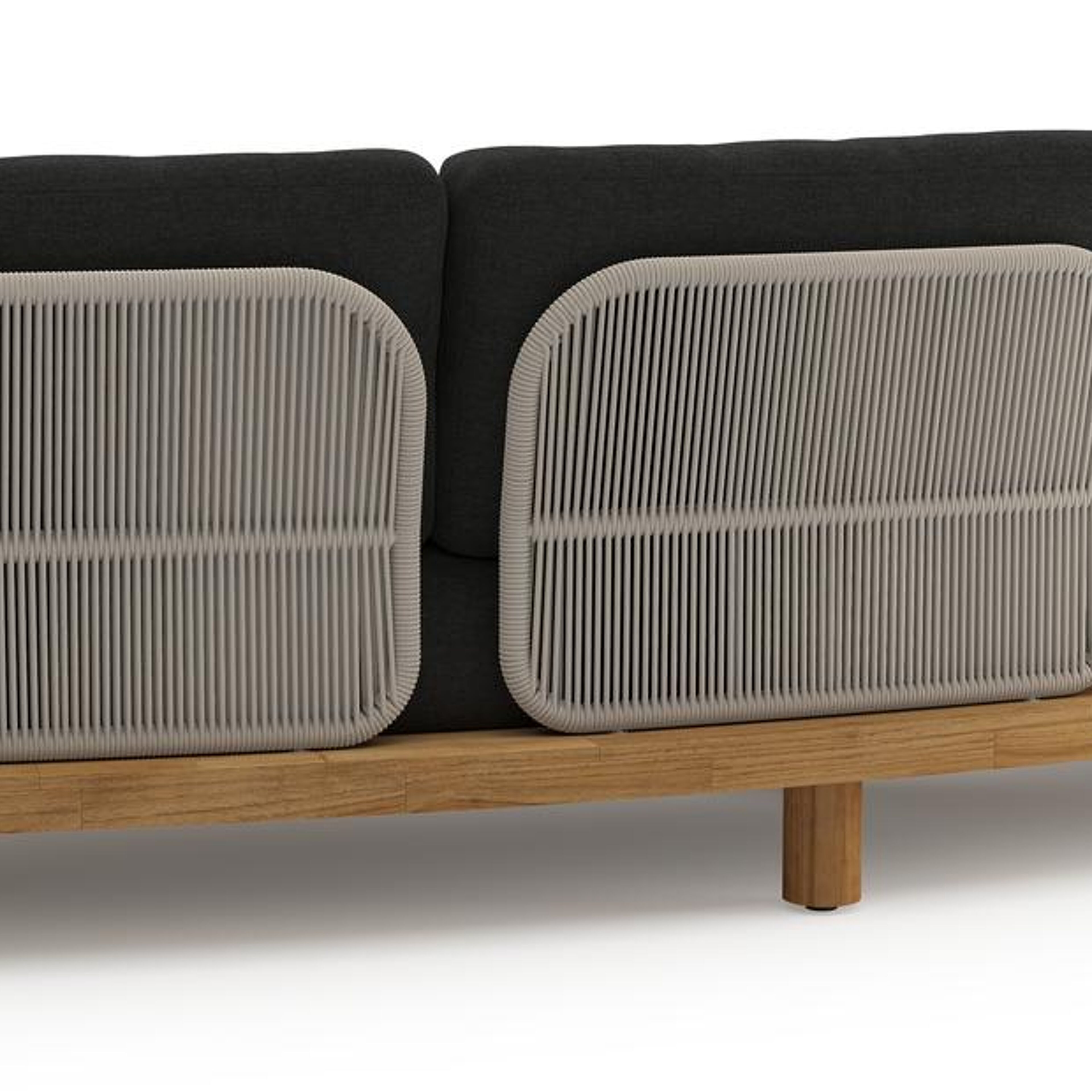 Donato loungebank in teak en beige verticaal geweven ronde rope met all weather sunbrella® luxe Chartres Sooty kussen | Exterioo tuinmeubelen