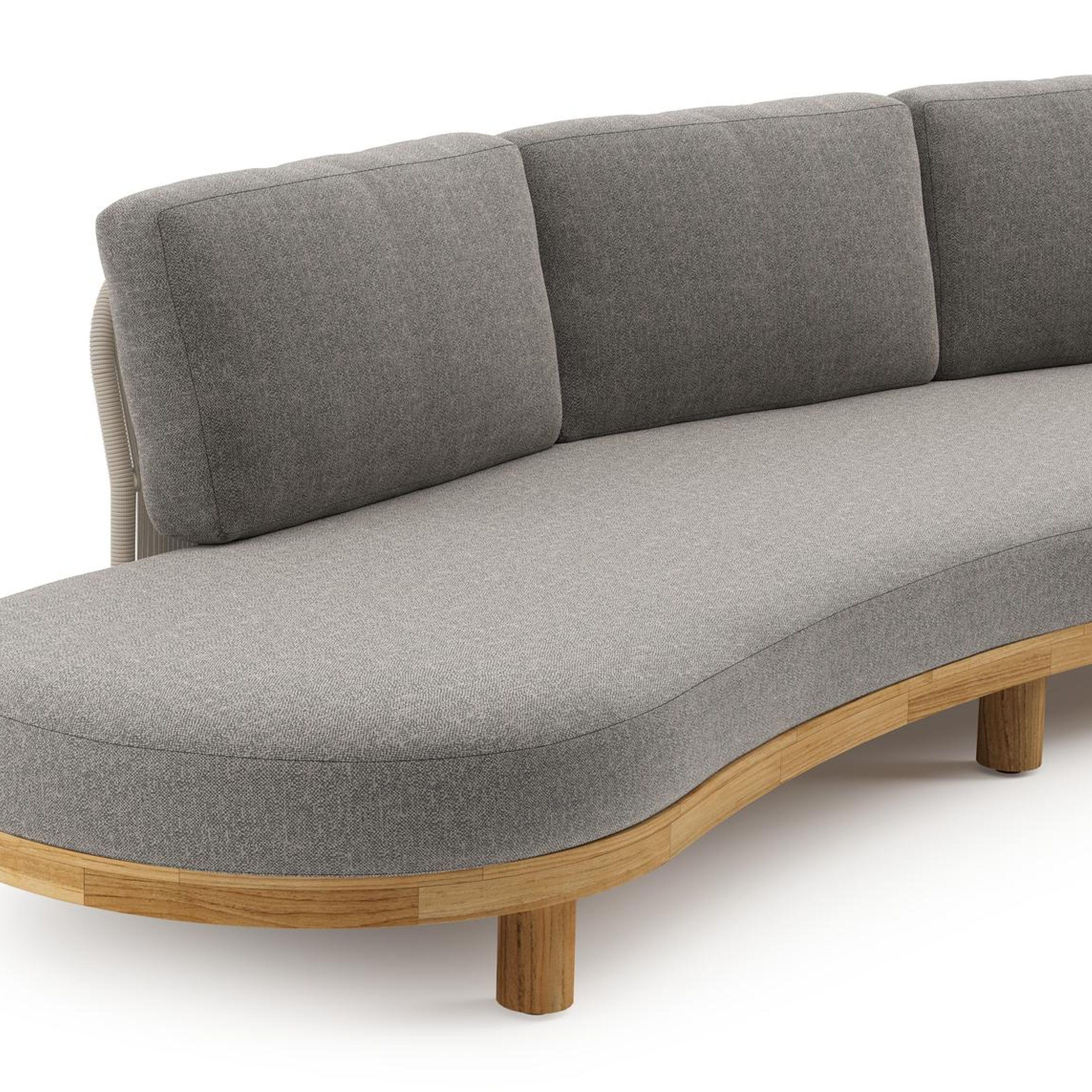 Donato loungebank in teak en beige verticaal geweven ronde rope met all weather sunbrella® luxe Chartres Drizzle kussen | Exterioo tuinmeubelen