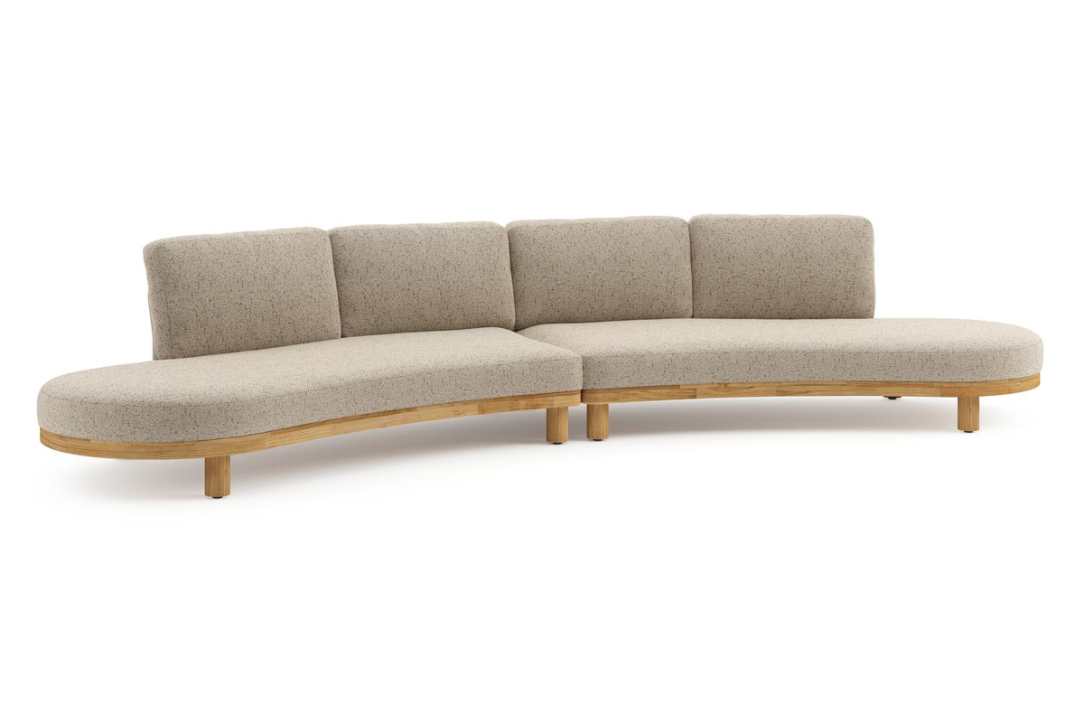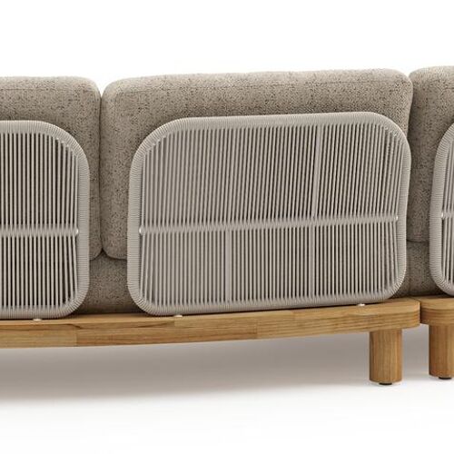Donato loungebank in teak en beige verticaal geweven ronde rope met all weather cosytica Bora Jungle kussen | Exterioo