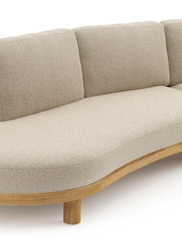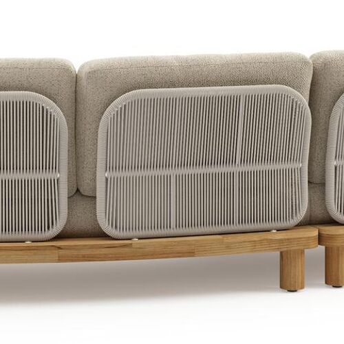 Donato loungebank in teak en beige verticaal geweven ronde rope met all weather cosytica Bora Forest kussen | Exterioo
