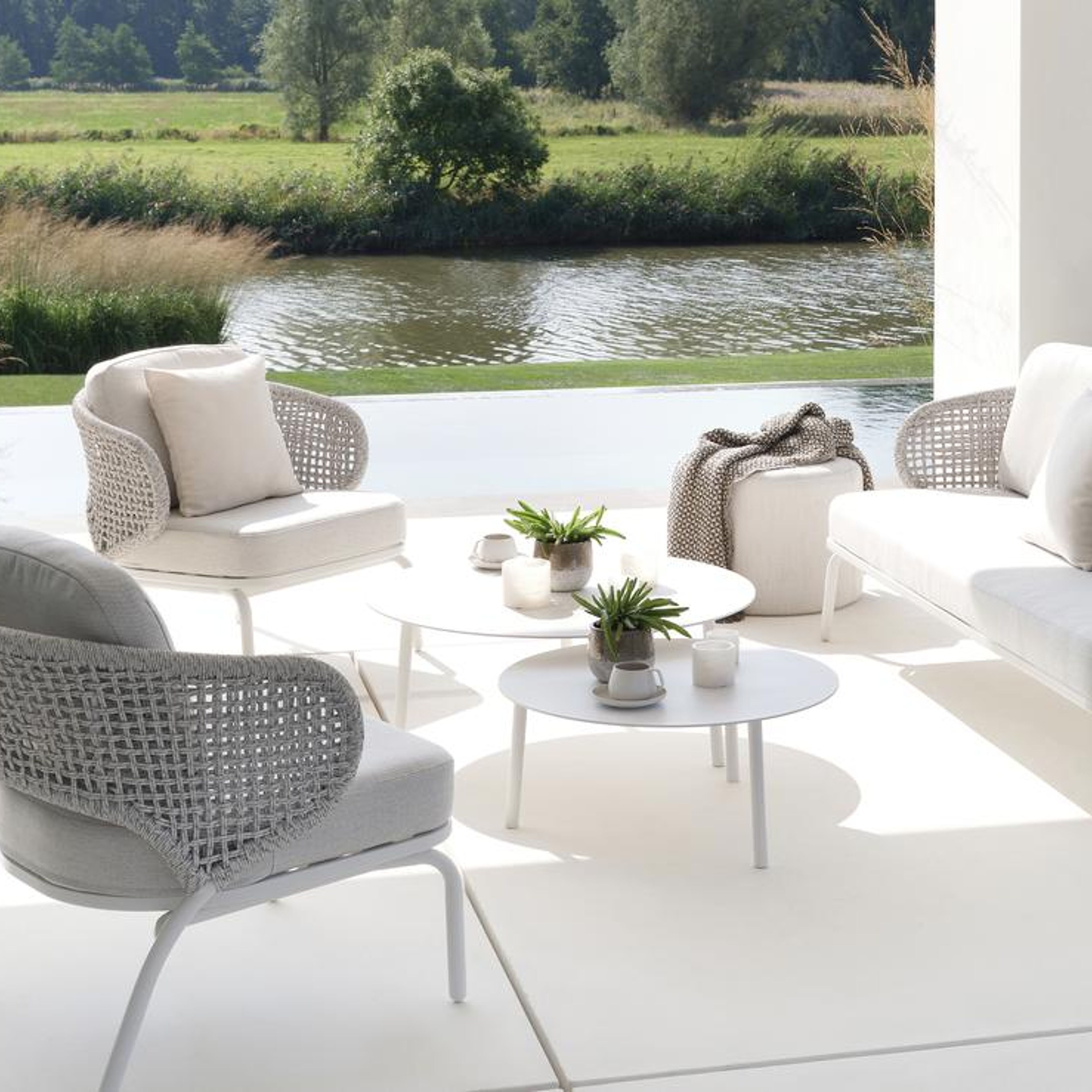 Donato omarmt de natuur met vloeiende vormen, warm teak en stijlvol aluminium in wit, zwart of beige. Een ontwerp dat rust uitstraalt, karakter toevoegt en natuurlijke elegantie naar je tuin brengt.