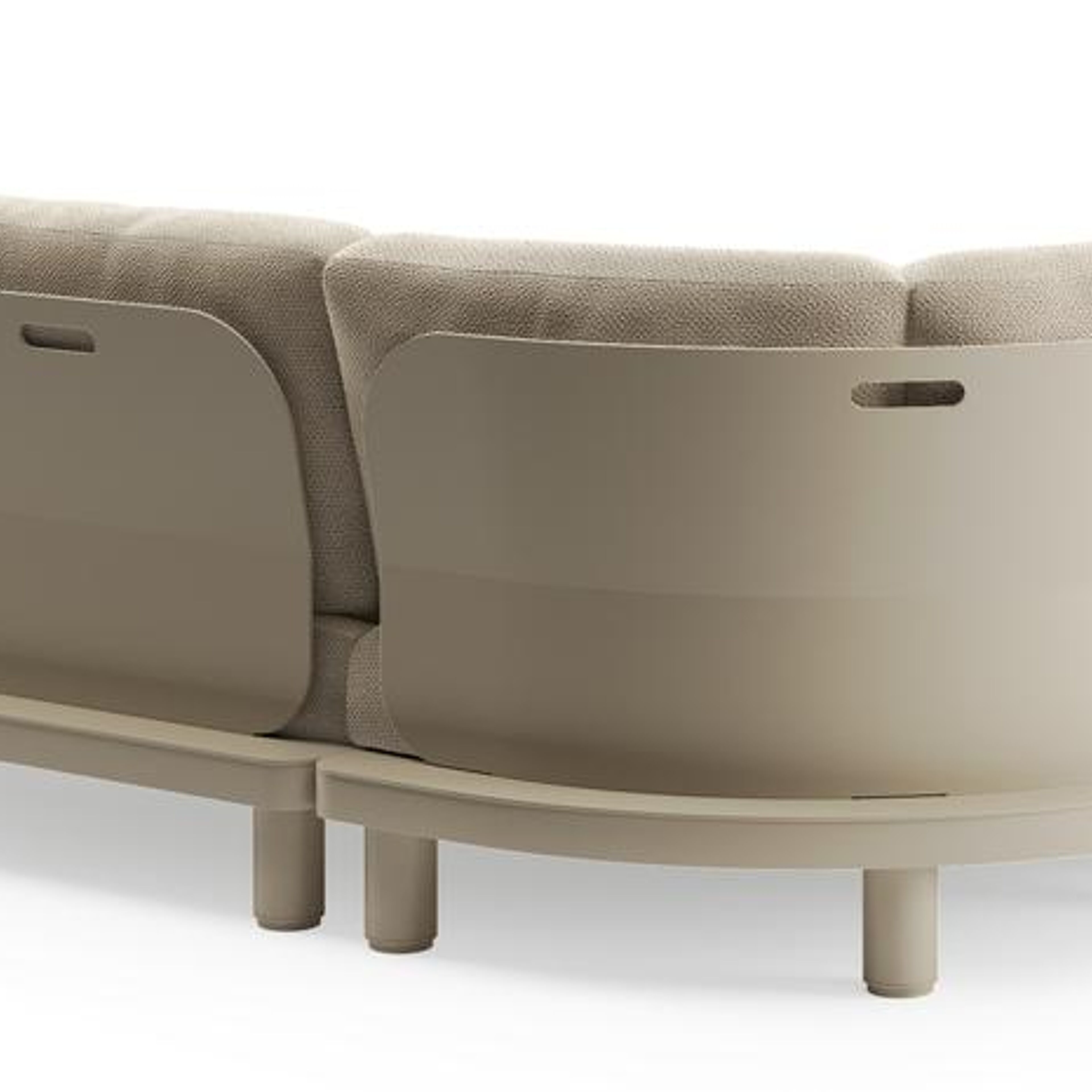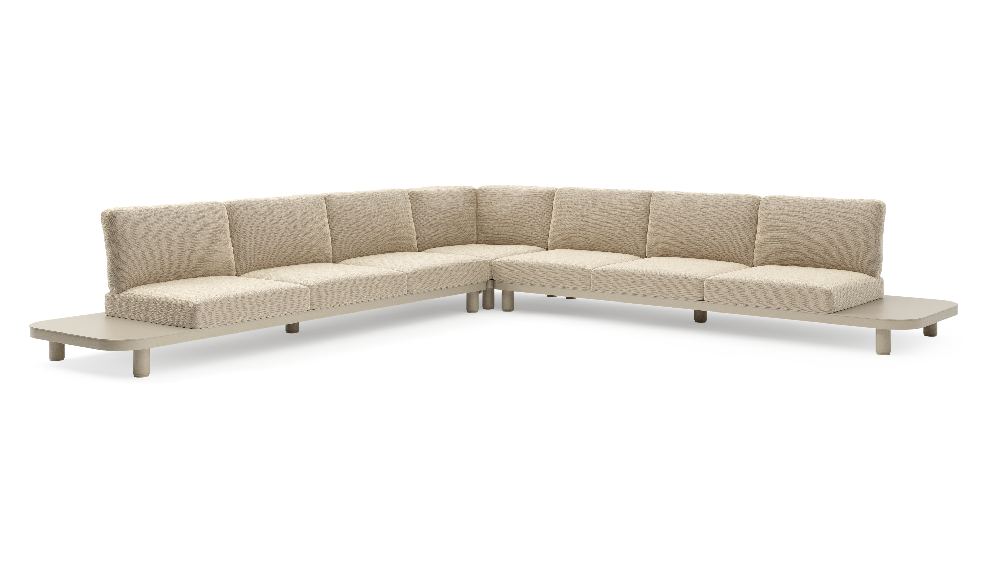 Donato loungehoek in beige aluminium met althea camel all weather cosytica kussen | Exterioo tuinmeubelen