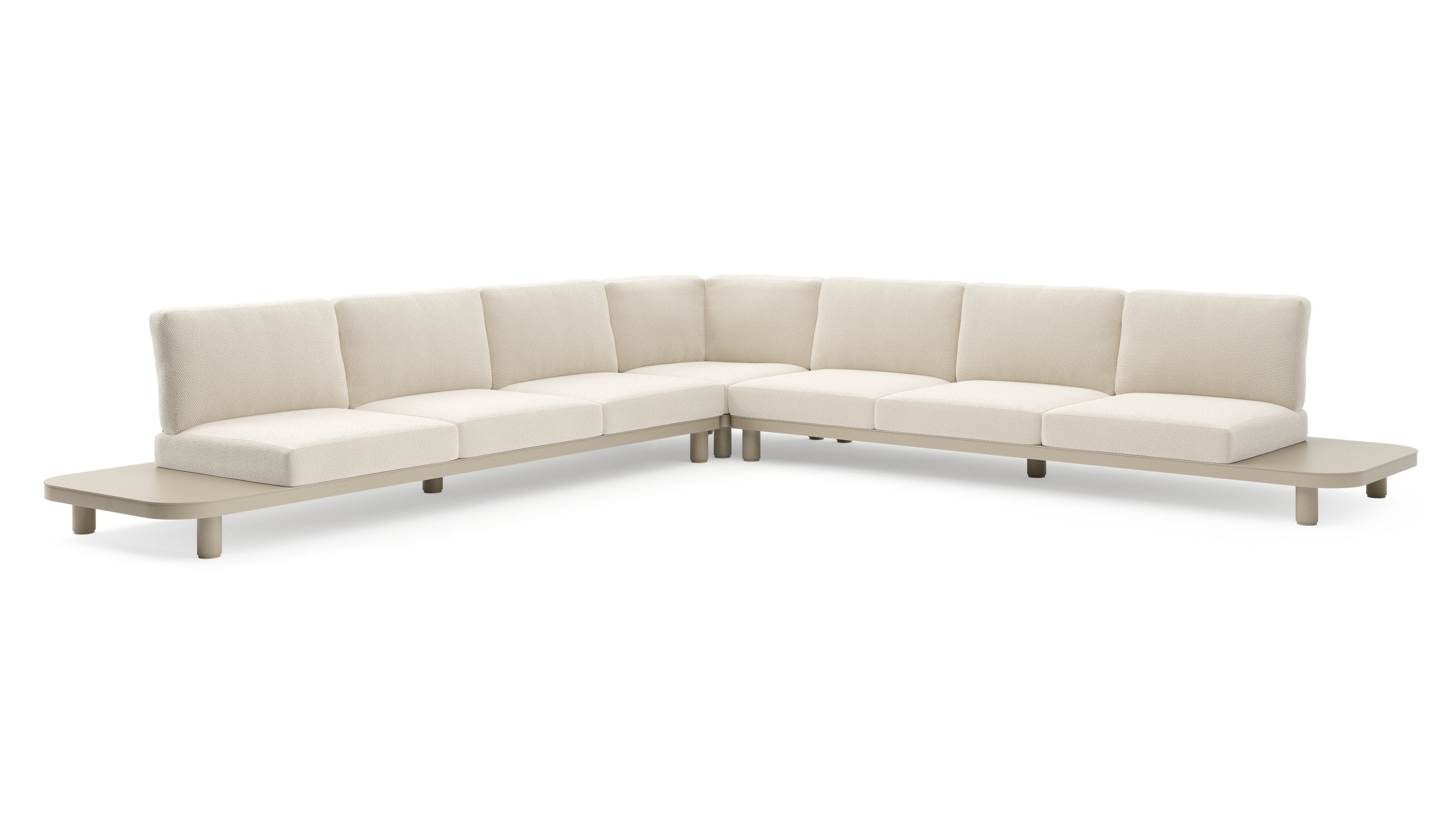 Donato loungehoek in beige aluminium met althea off white all weather cosytica kussen | Exterioo tuinmeubelen