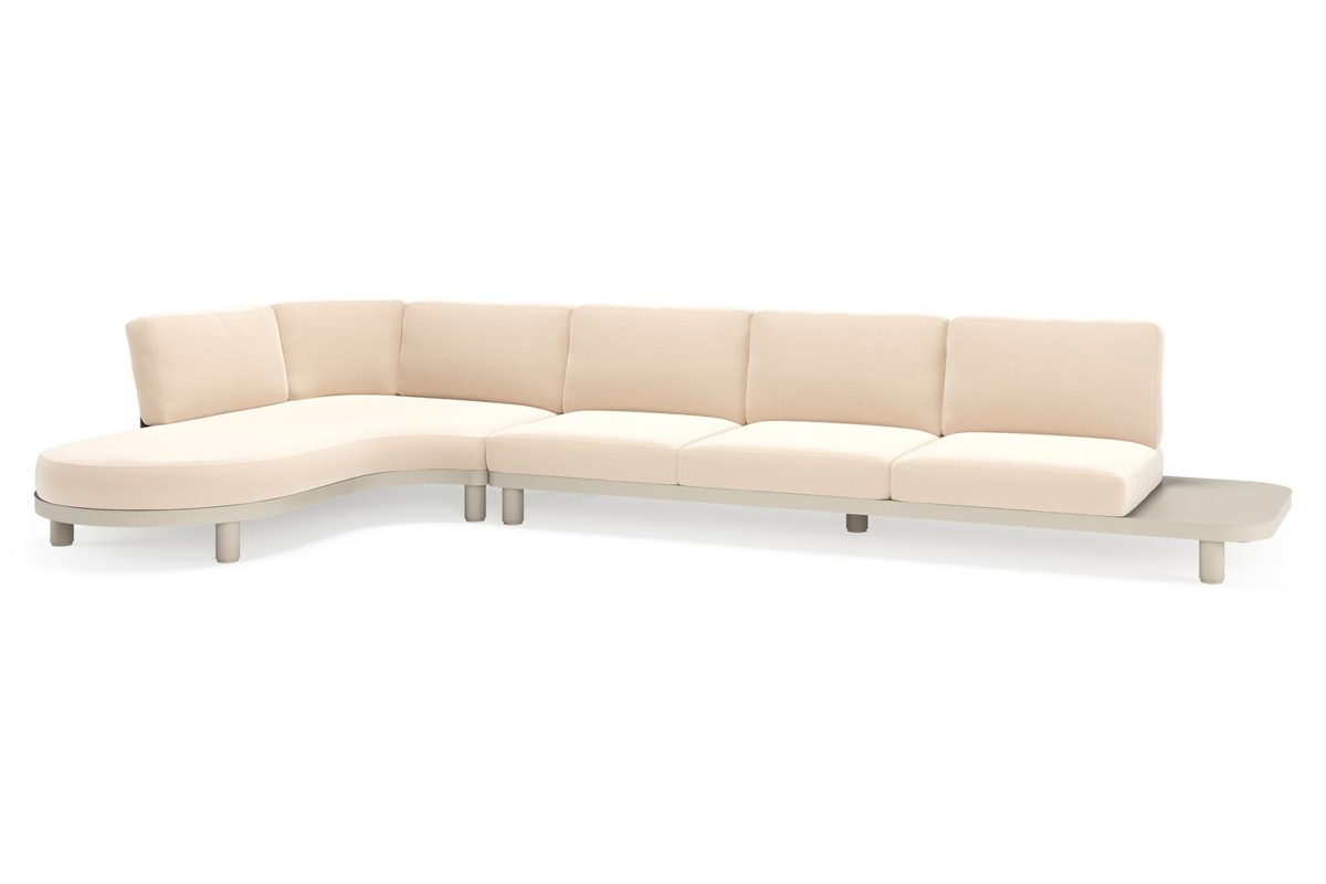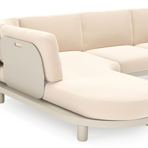 Donato loungehoek in beige aluminium met natte linen chalk all weather sunbrella® luxe kussen | Exterioo