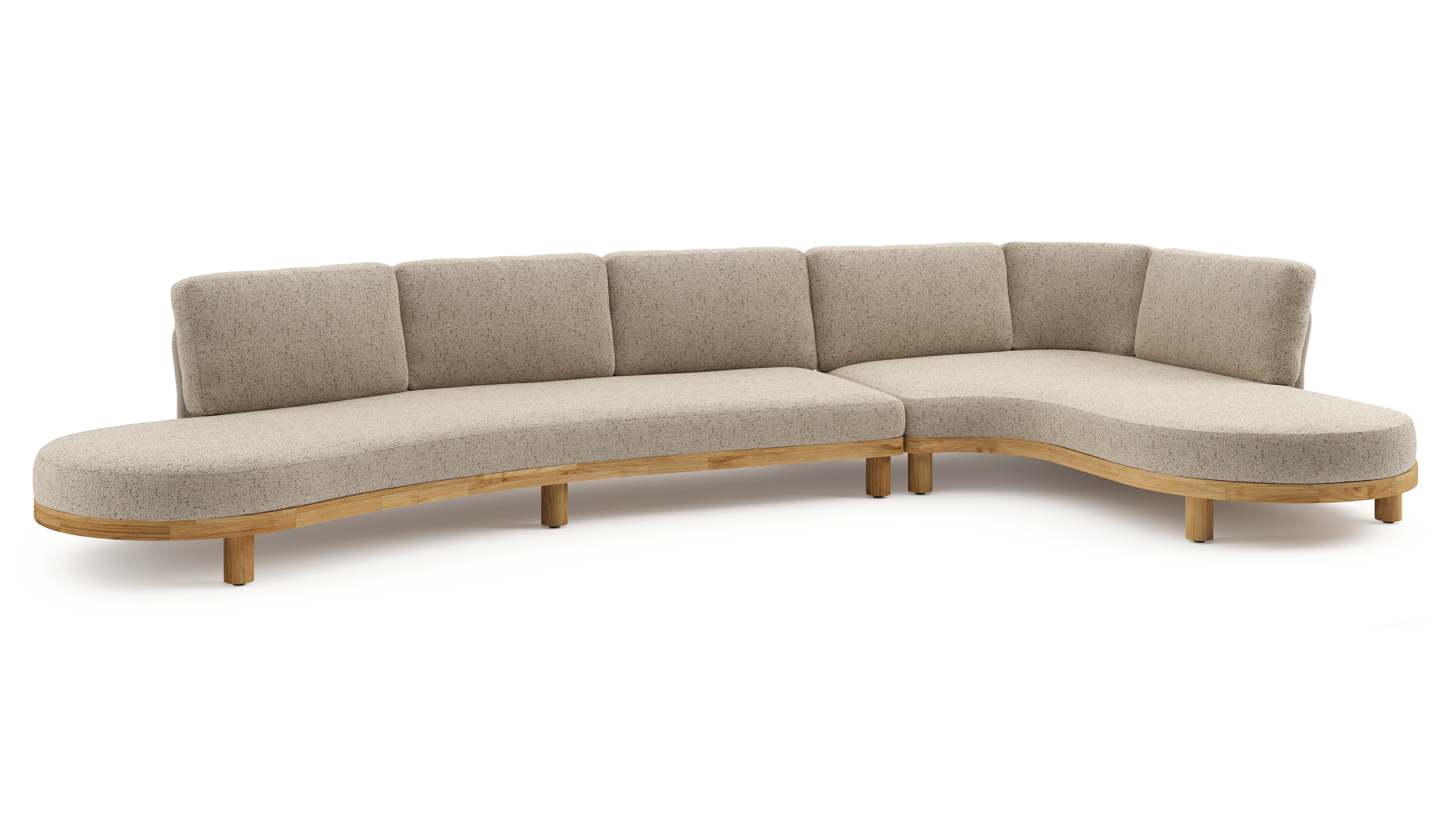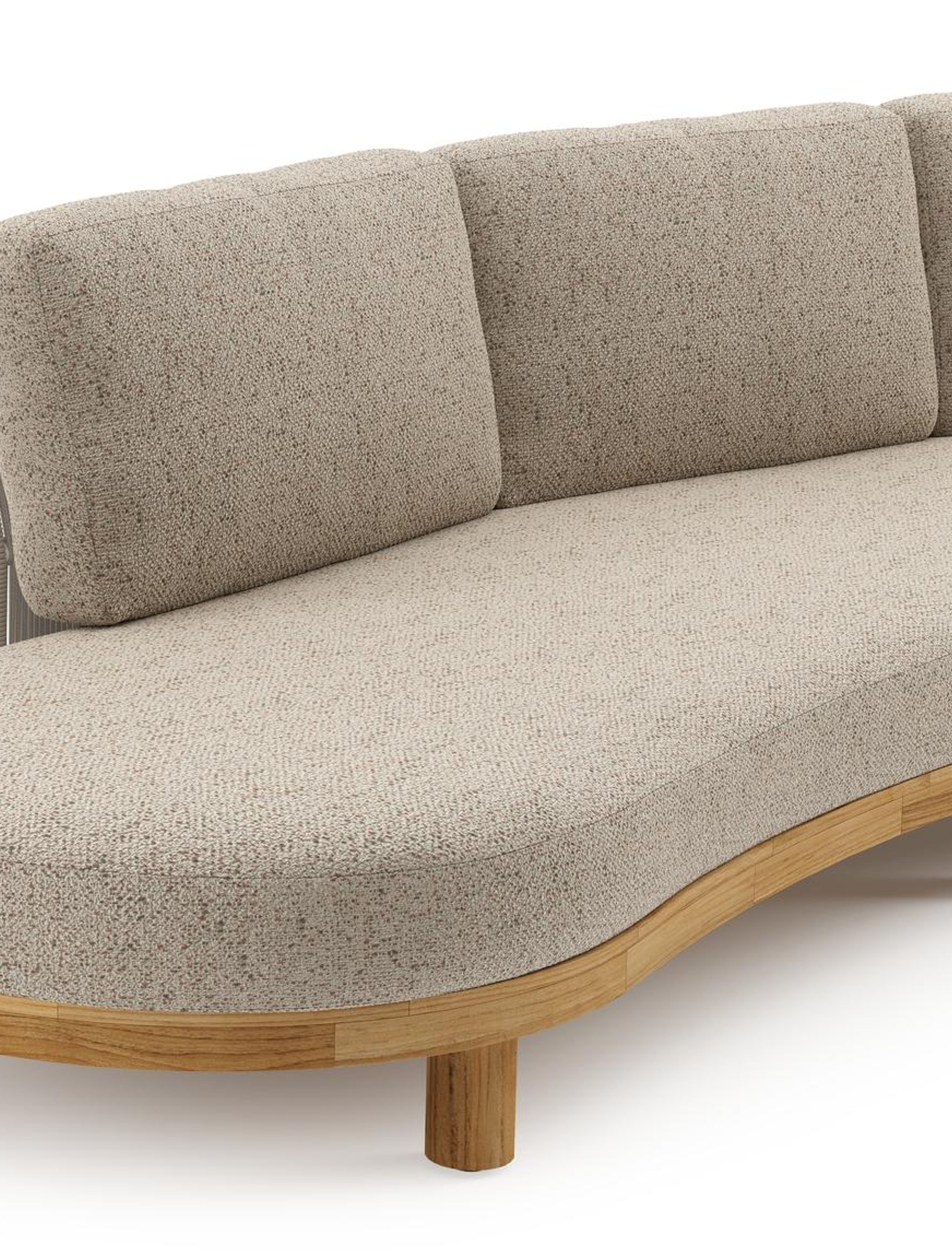 Donato loungehoek in teak en beige verticaal geweven ronde rope met all weather cosytica Bora Jungle kussen | Exterioo tuinmeubelen