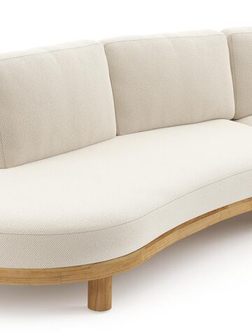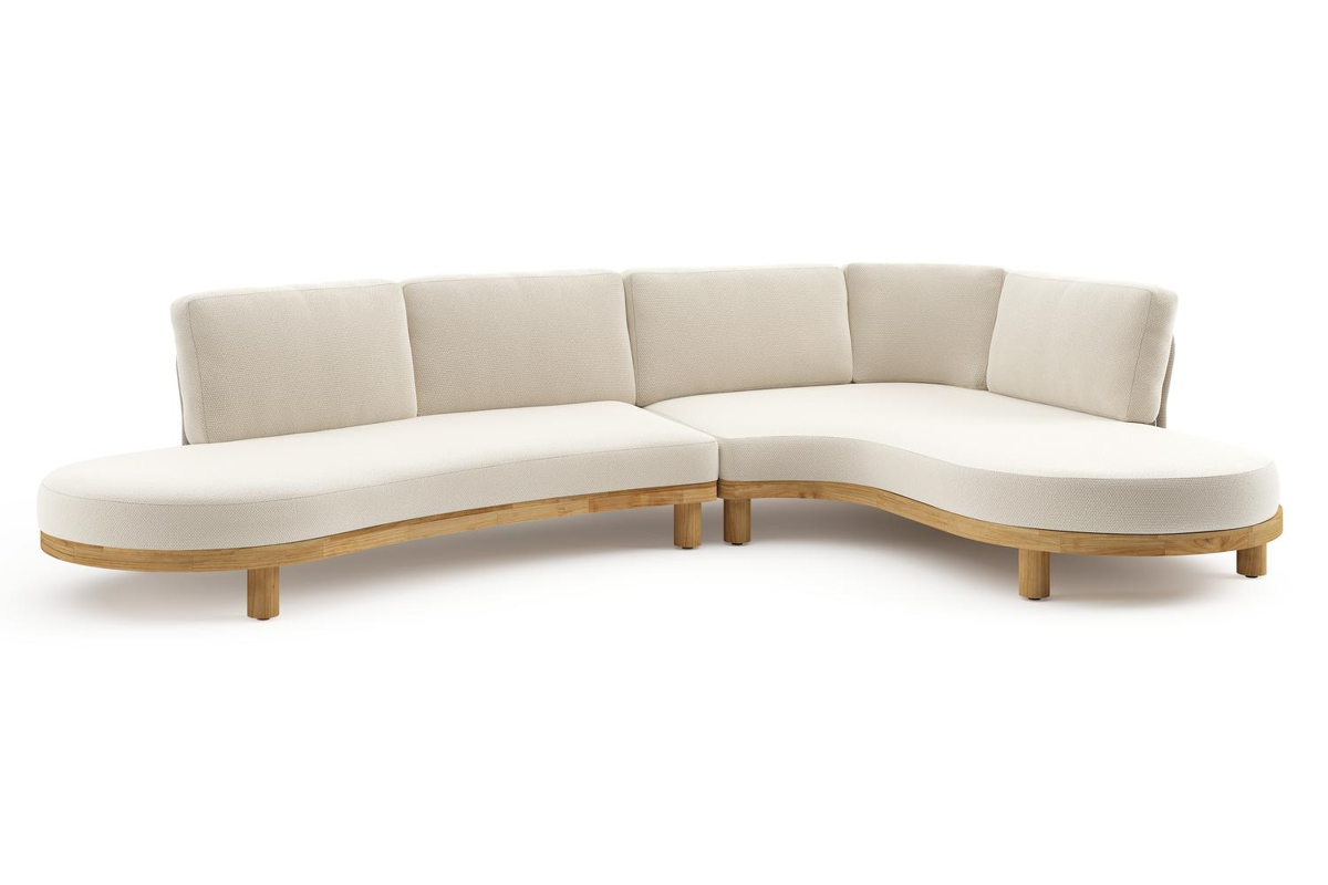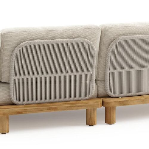 Donato loungehoek in teak en beige verticaal geweven ronde rope met all weather cosytica Althea Off White kussen | Exterioo