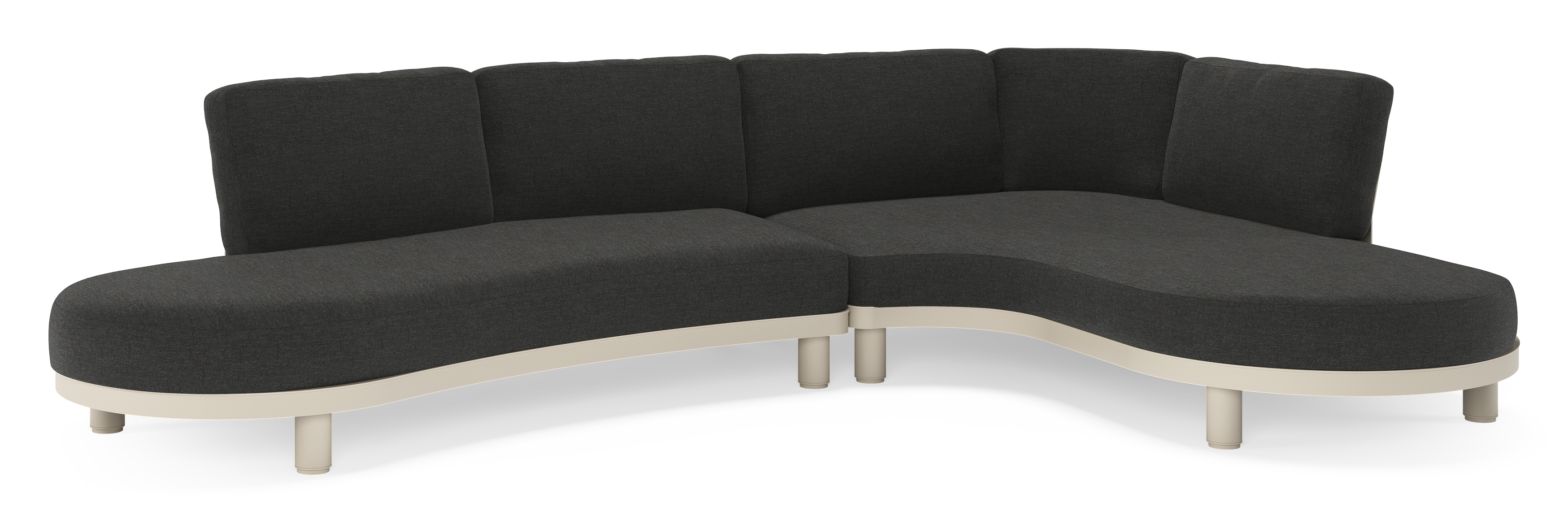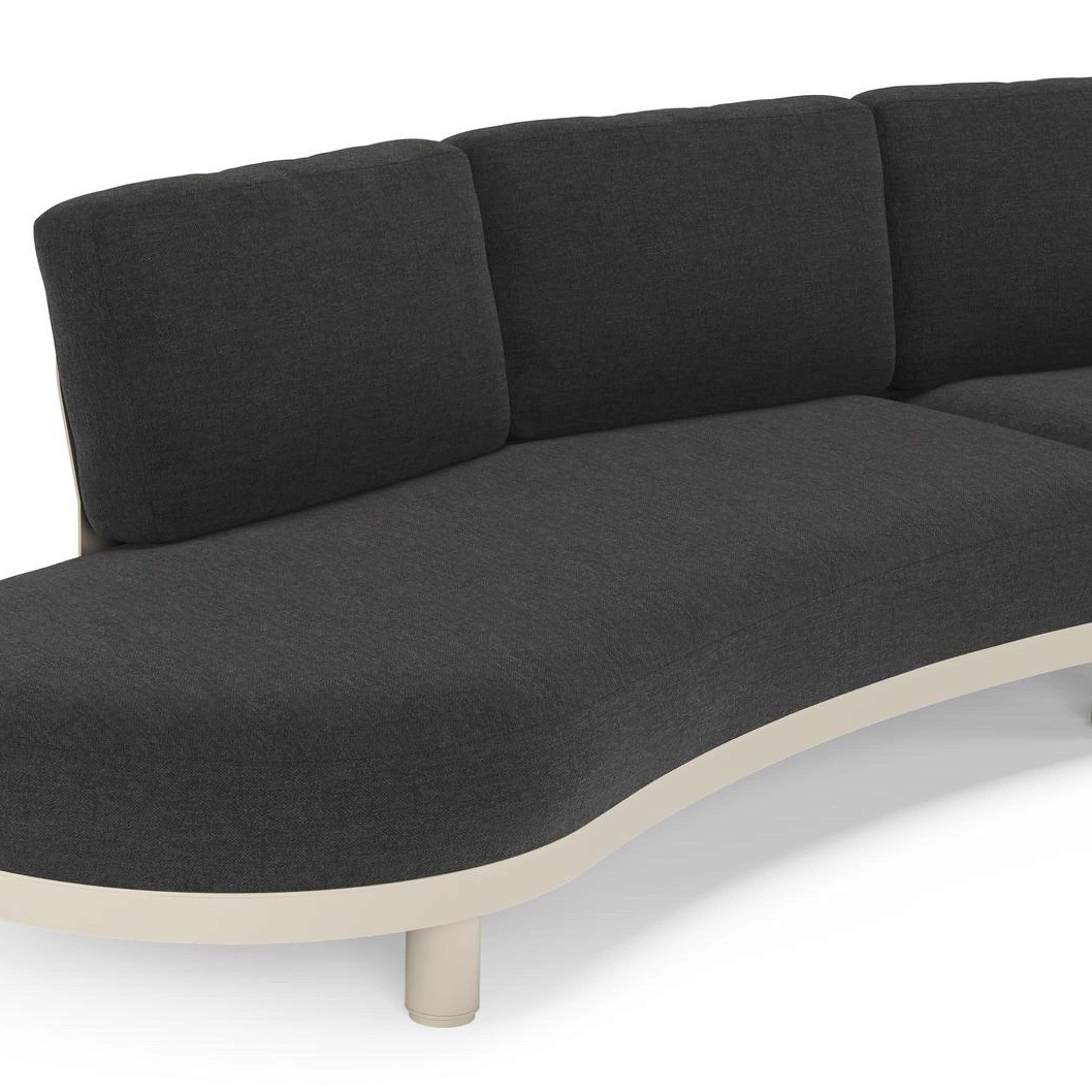 Donato loungehoek in beige aluminium met all weather sunbrella® luxe Chartres Sooty kussen | Exterioo tuinmeubelen