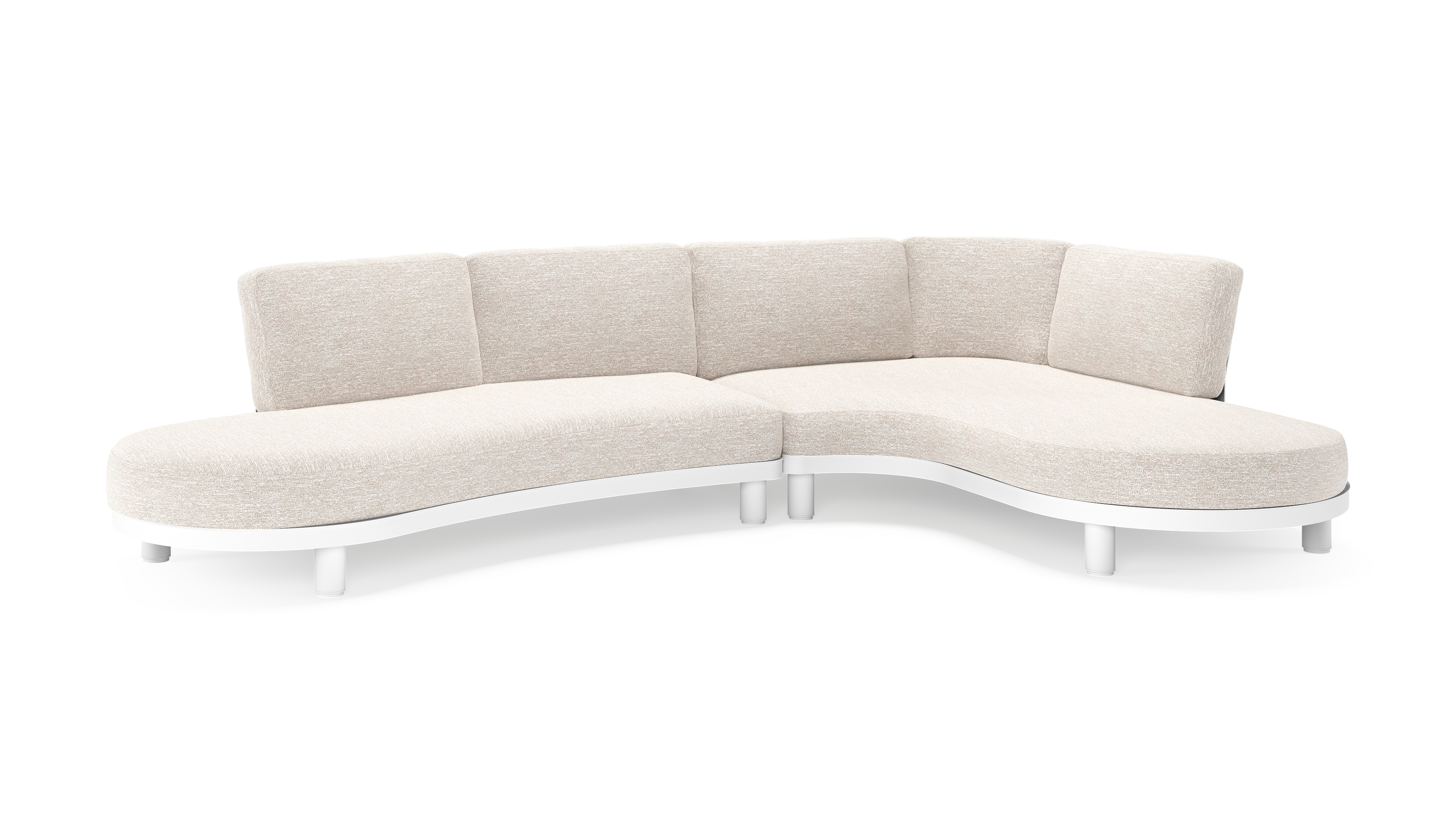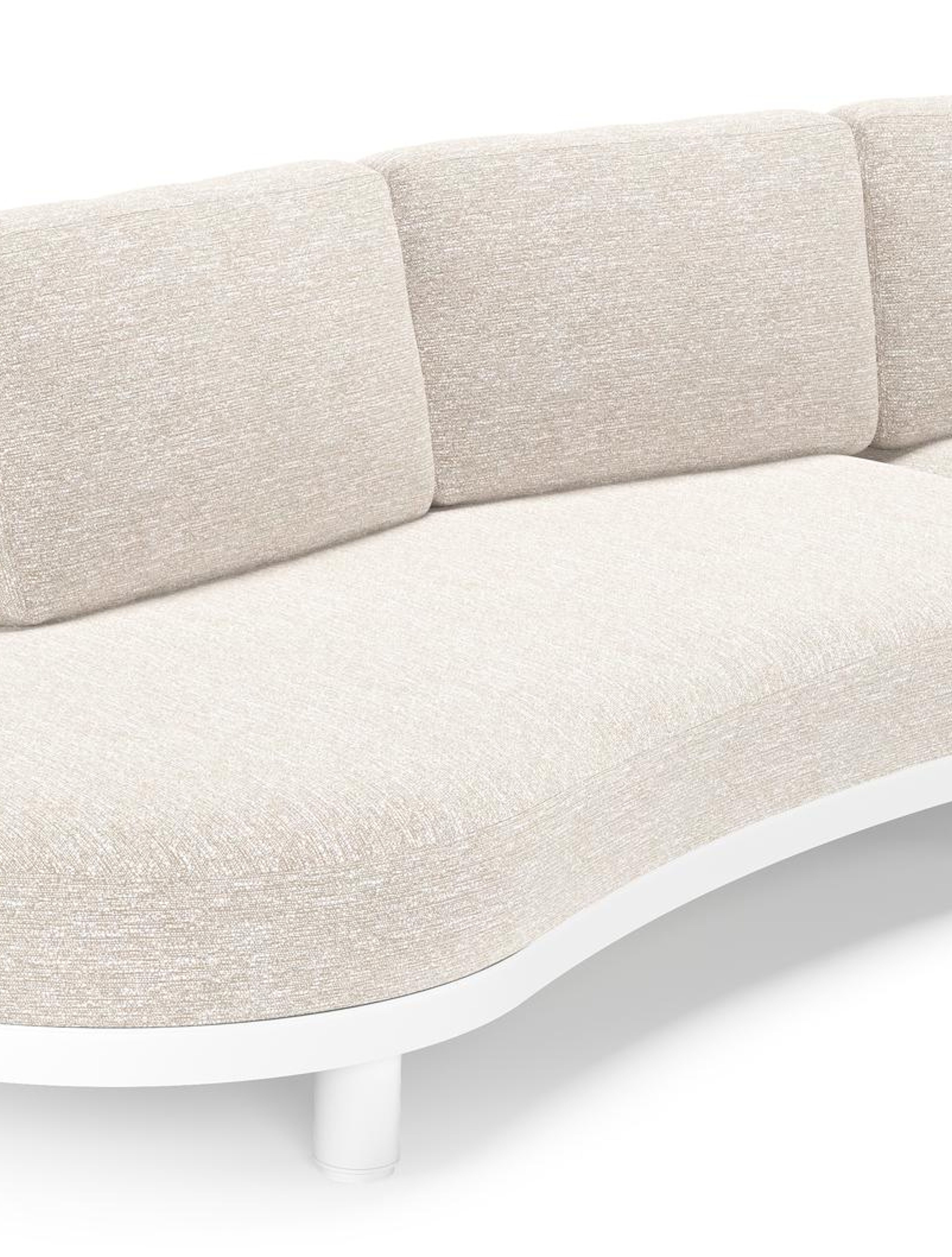 Donato loungehoek in wit aluminium met all weather sunbrella® luxe Tundra Sand kussen | Exterioo tuinmeubelen