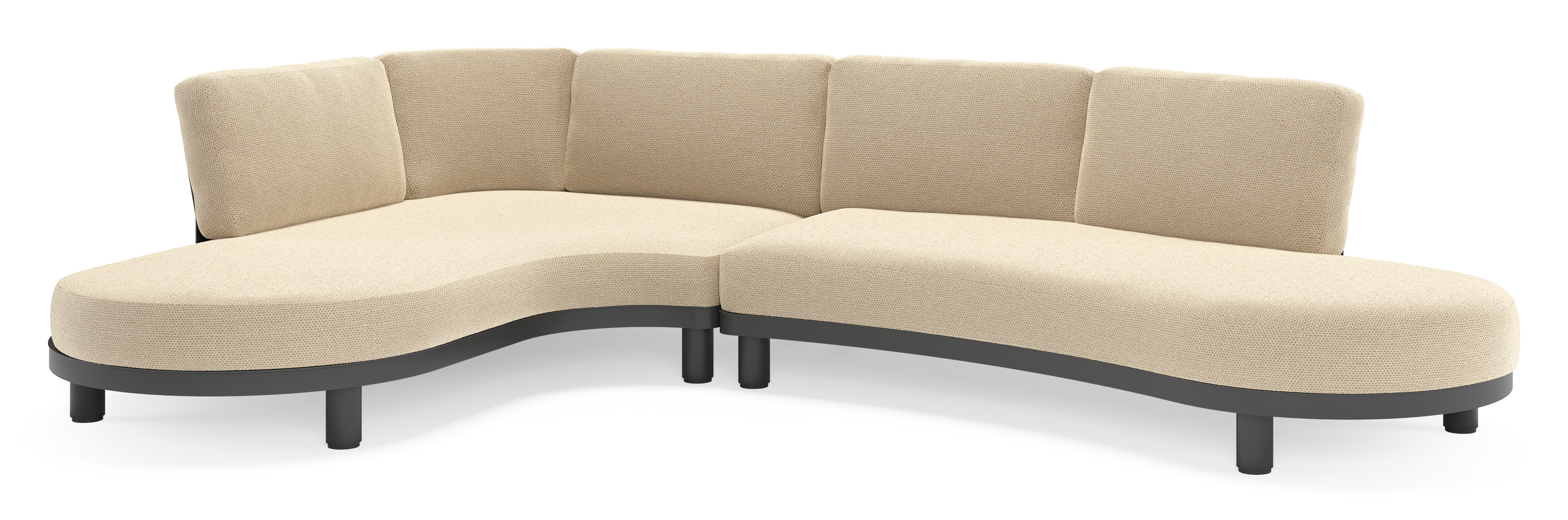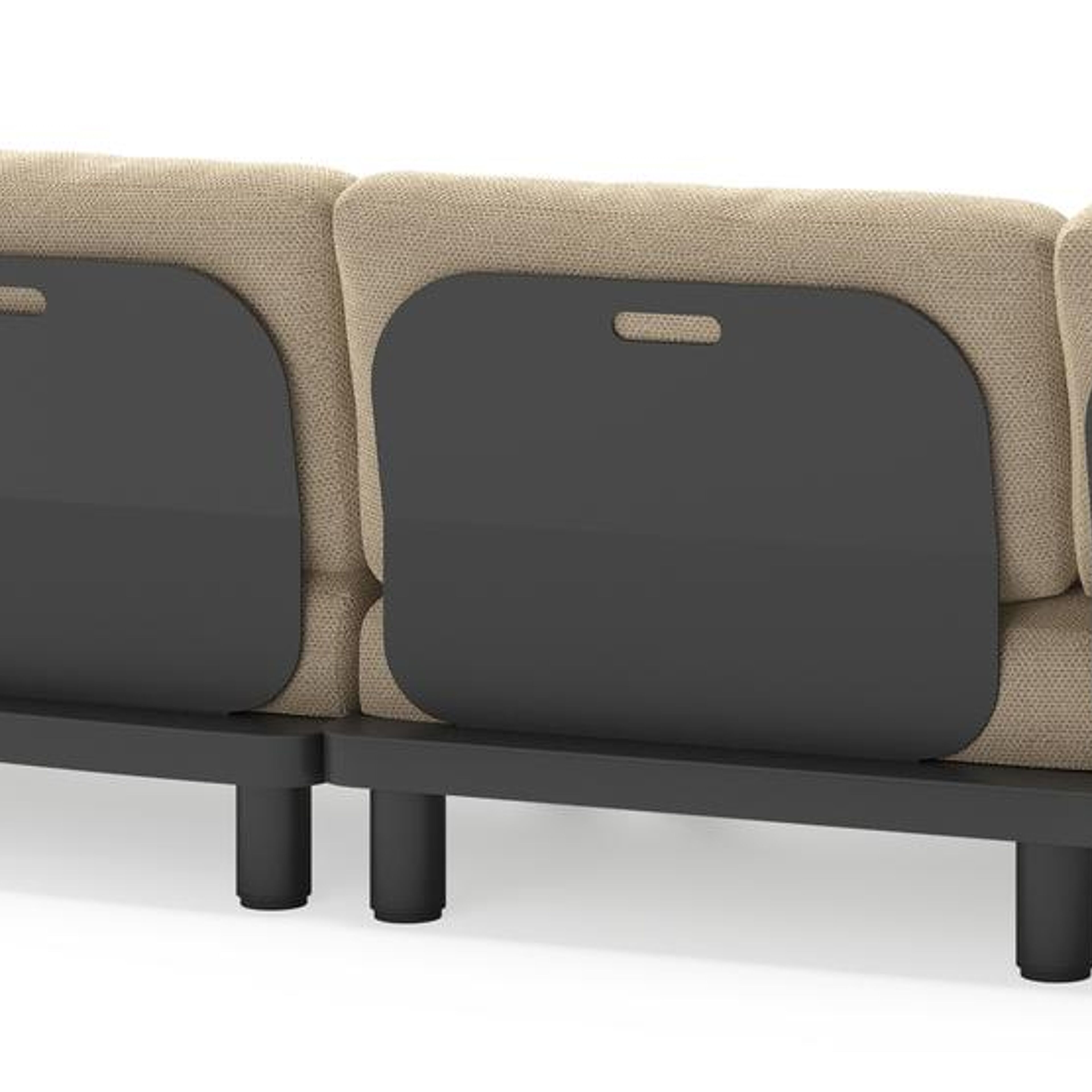 Donato loungehoek in zwart aluminium met all weather cosytica Althea Camel kussen | Exterioo tuinmeubelen